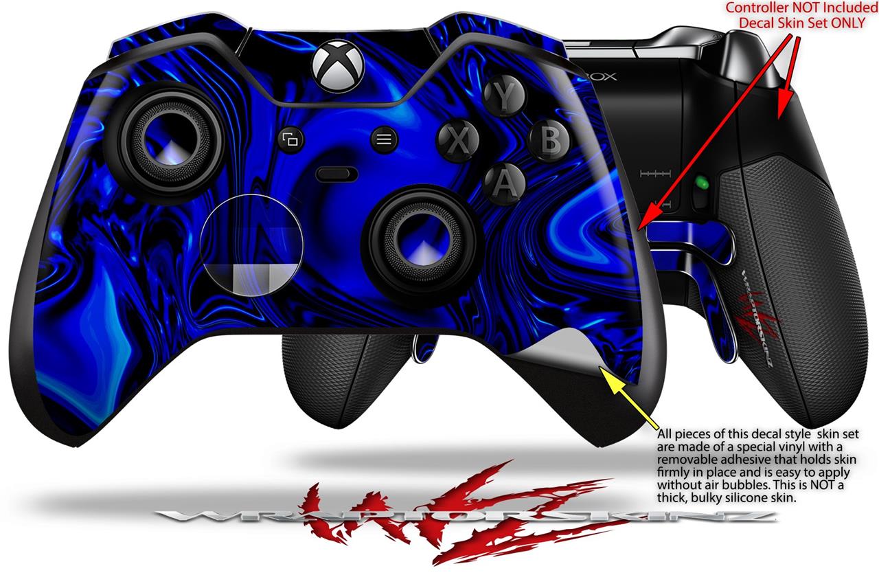 Decal Skin compatible with Microsoft XBOX One ELITE Wireless ControllerLiquid Metal Chrome Royal Blue