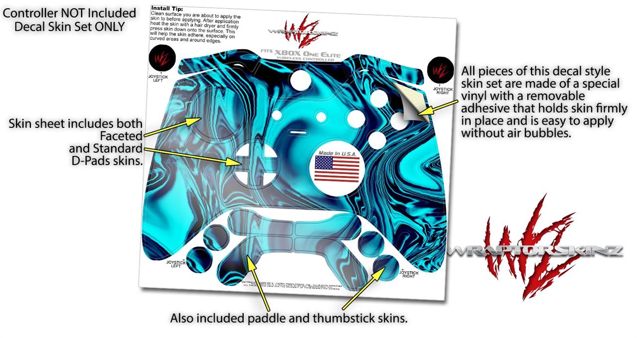 Decal Skin compatible with Microsoft XBOX One ELITE Wireless ControllerLiquid Metal Chrome Neon Blue