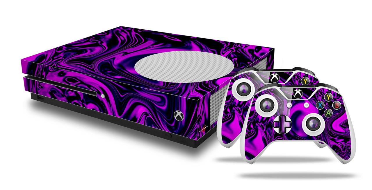 WraptorSkinz Decal Skin Wrap Set works with 2016 and newer XBOX One S Console and 2 Controllers Liquid Metal Chrome Purple