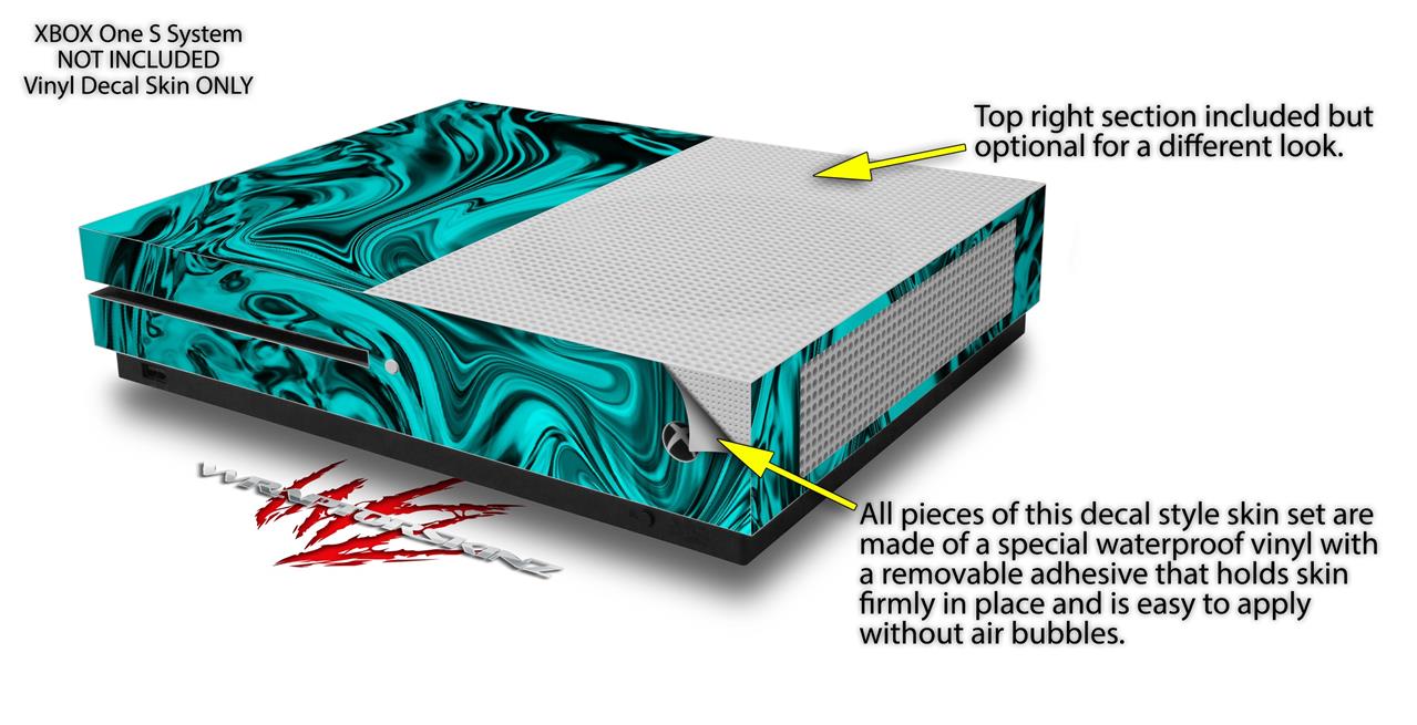 WraptorSkinz Decal Skin Wrap Set works with 2016 and newer XBOX One S Console and 2 Controllers Liquid Metal Chrome Neon Teal