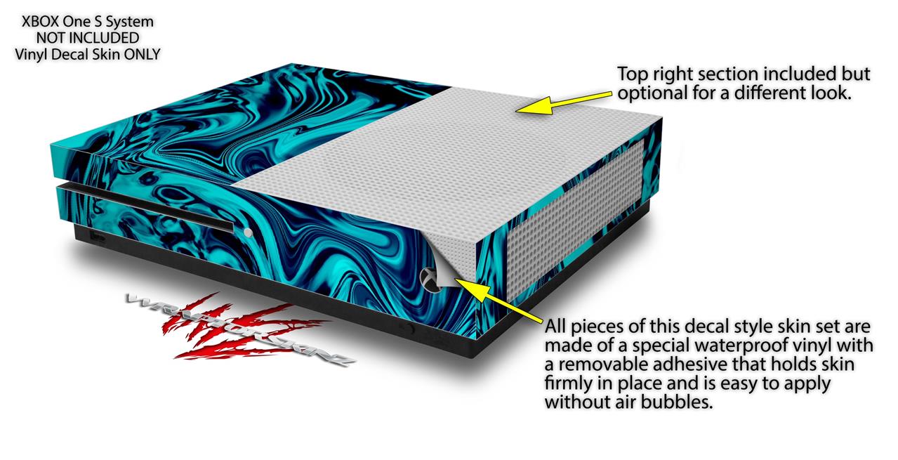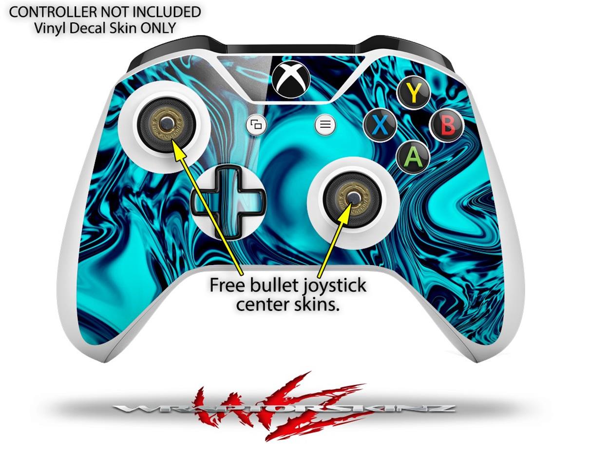 WraptorSkinz Decal Skin Wrap Set works with 2016 and newer XBOX One S Console and 2 Controllers Liquid Metal Chrome Neon Blue