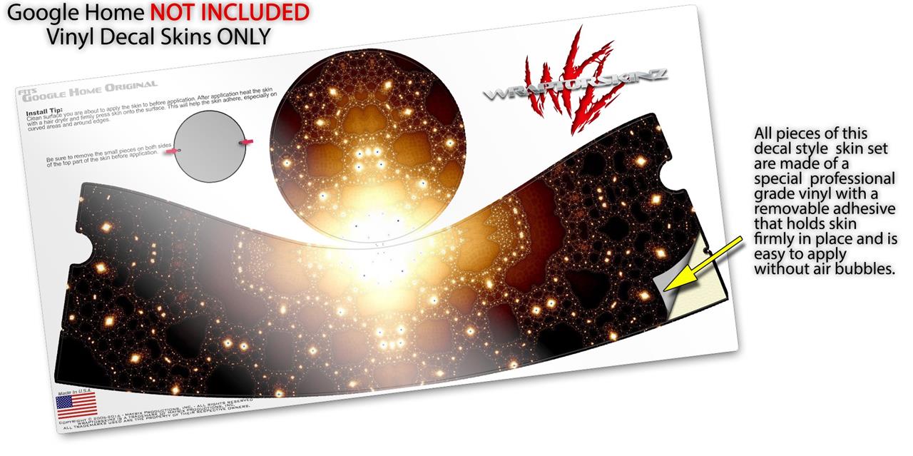 WraptorSkinz® skin wraps for the Google Home are printed using superb photo quality designs and vibrant colors printed with special fade resistant inks that last even in direct sun for years. WraptorSkinz® are a composite of two layers of commercial grade materials. The bottom layer is a soft, flexible vinyl with a special removable adhesive that is easily positioned, applied without air bubbles. Next we print the bottom layer with UV protected, fade resistant inks that deliver superb photo quality designs in vibrant colors. Finally we bond a professional grade laminate over the entire skin adding a glossy protective finish. This product is not affiliated with or endorsed by Google.