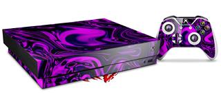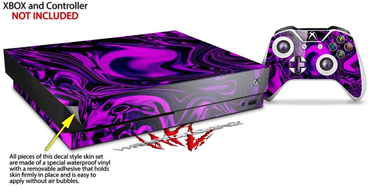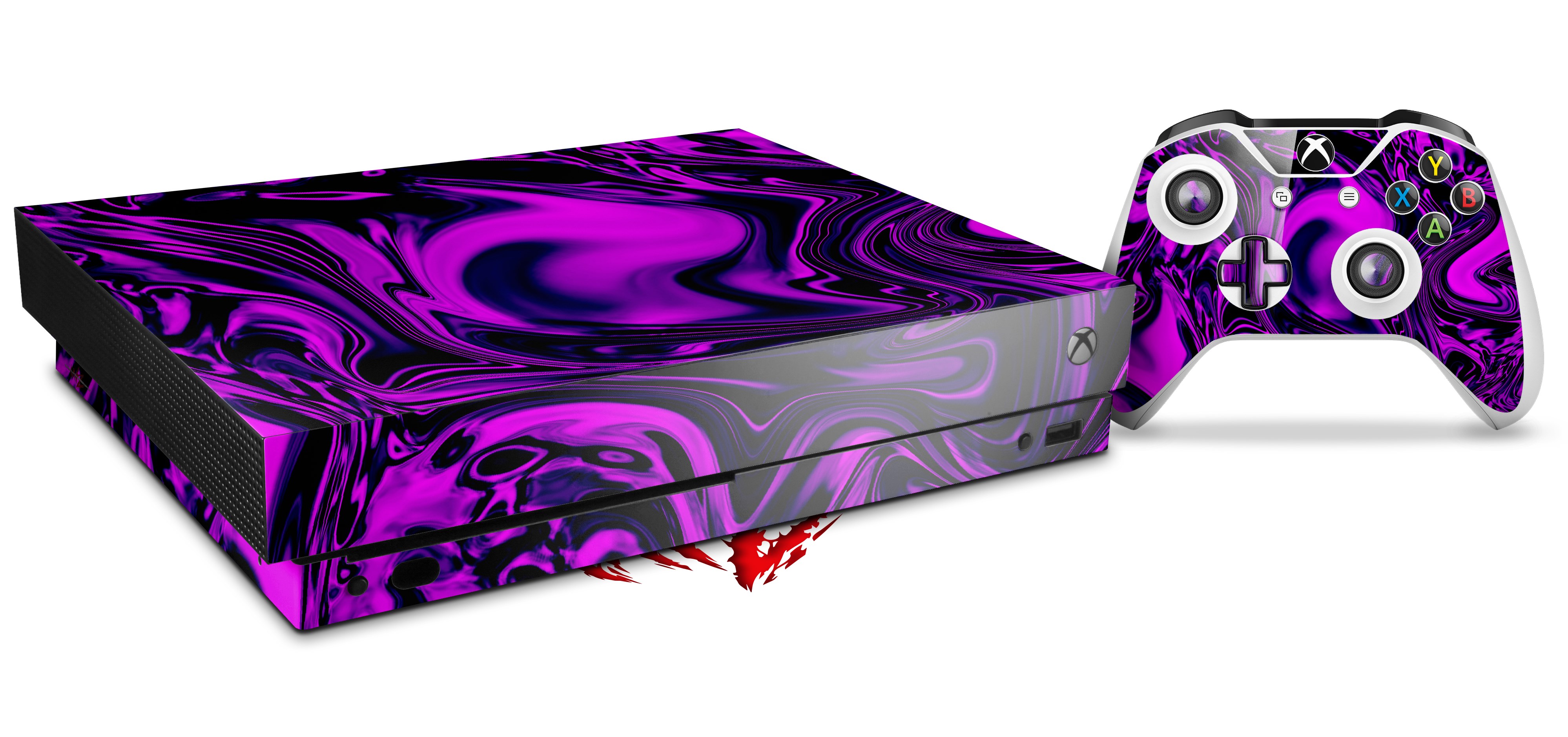 Skin Wrap compatible with XBOX One X Console and Controller Liquid Metal Chrome Purple