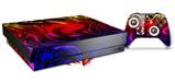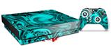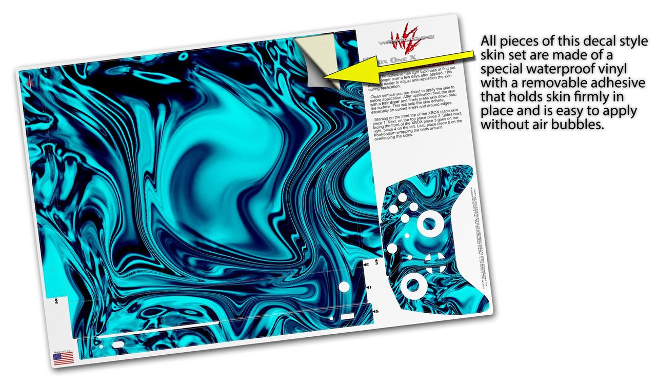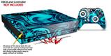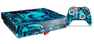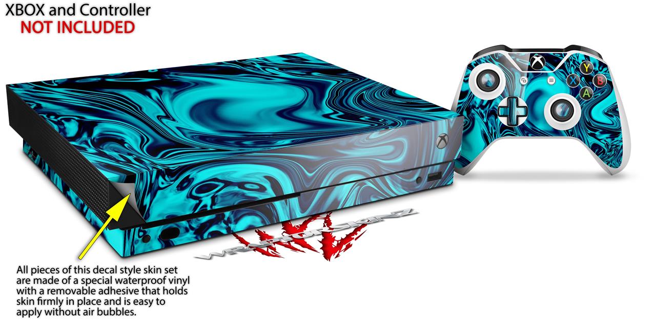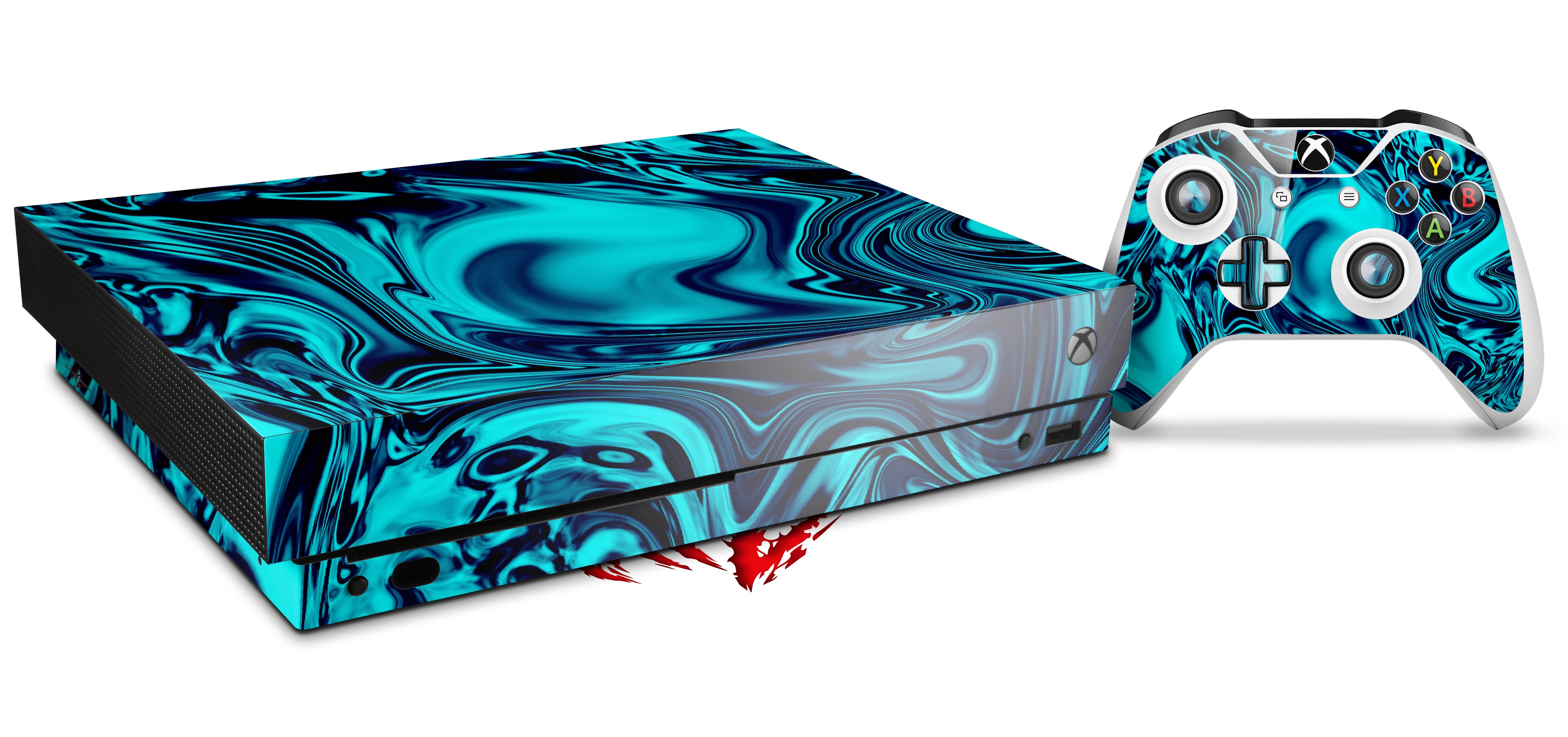 Skin Wrap compatible with XBOX One X Console and Controller Liquid Metal Chrome Neon Blue