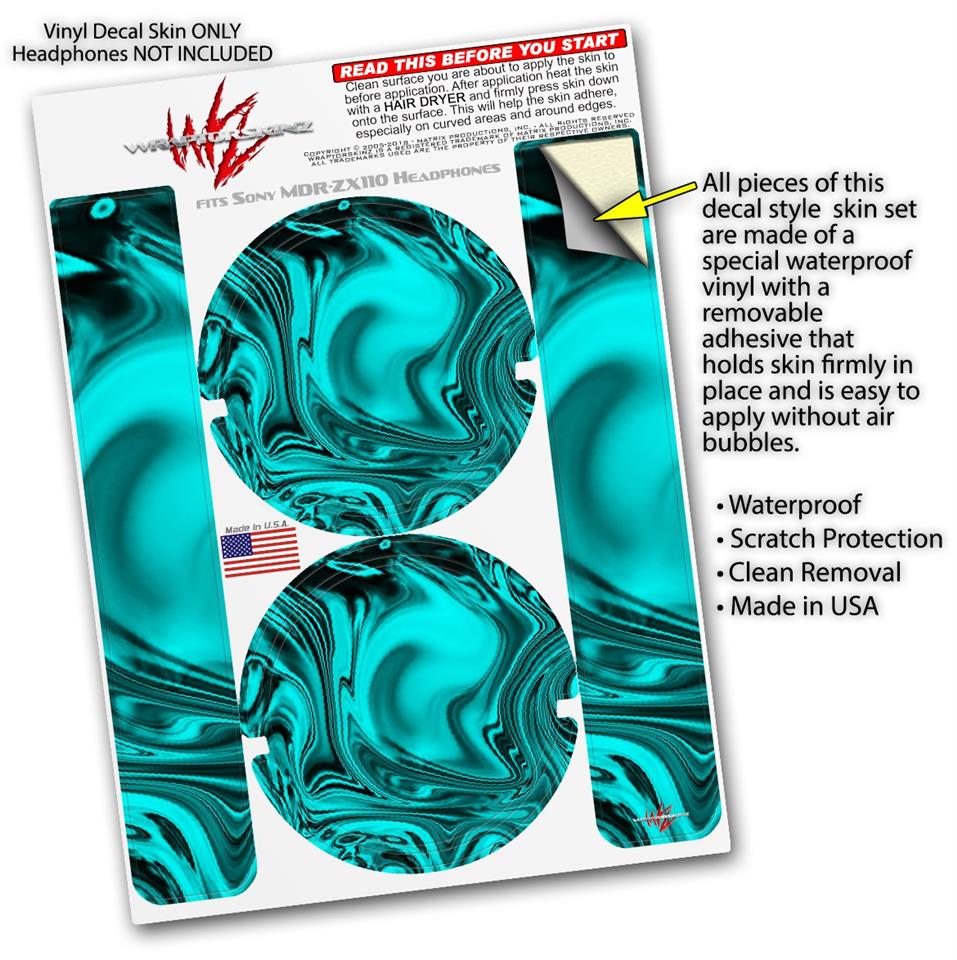 Decal style Skin Wrap compatible with Sony MDR ZX110 Headphones Liquid Metal Chrome Neon Teal (HEADPHONES NOT INCLUDED)