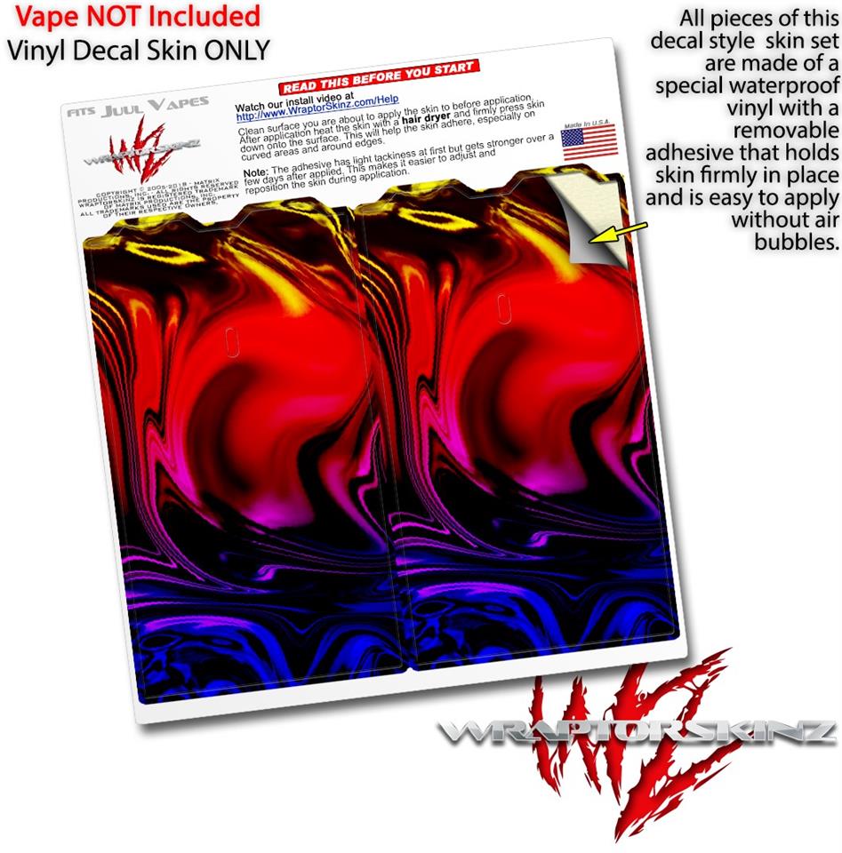WraptorSkinz® skin wraps are printed using superb photo quality designs and vibrant colors printed with special fade resistant inks that last even in direct sun for years. WraptorSkinz are a composite of two layers of commercial grade materials. The bottom layer is a soft, flexible vinyl with a special removable adhesive that is easily positioned, applied without air bubbles. Next we print the bottom layer with UV protected, fade resistant inks that deliver superb photo quality designs in vibrant colors. Finally we bond a professional grade laminate over the entire skin adding a glossy protective finish. This product is not affiliated with or endorsed by the Juul brand.