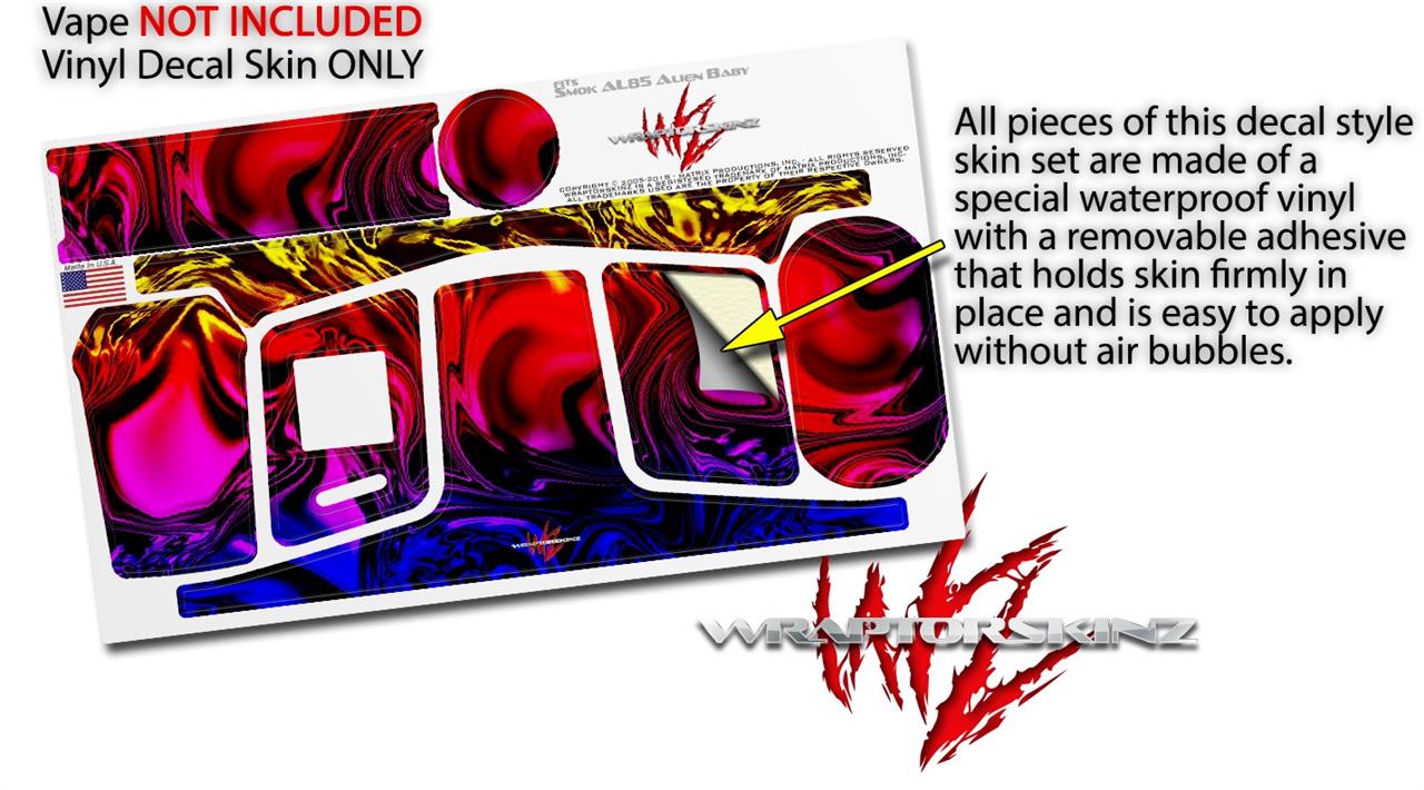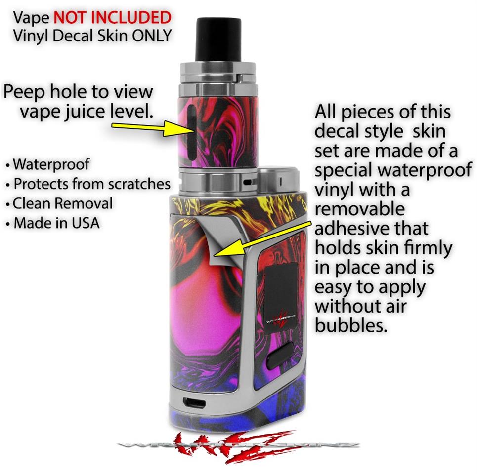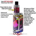 WraptorSkinz® skin wraps are printed using superb photo quality designs and vibrant colors printed with special fade resistant inks that last even in direct sun for years. WraptorSkinz are a composite of two layers of commercial grade materials. The bottom layer is a soft, flexible vinyl with a special removable adhesive that is easily positioned, applied without air bubbles. Next we print the bottom layer with UV protected, fade resistant inks that deliver superb photo quality designs in vibrant colors. Finally we bond a professional grade laminate over the entire skin adding a glossy protective finish. This product is not affiliated with or endorsed by the Smok brand.