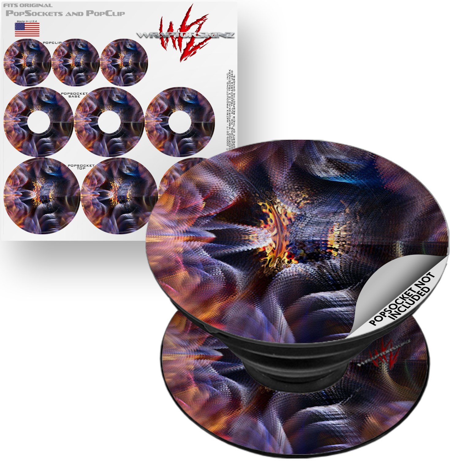 WraptorSkinz® skin decals are printed using superb photo quality designs and vibrant colors printed with special fade resistant inks that last even in direct sun for years. WraptorSkinz® are a composite of two layers of commercial grade materials. The bottom layer is a soft, flexible vinyl with a special removable adhesive that is easily positioned, applied without air bubbles. Next, we print the bottom layer with UV protected, fade resistant inks that deliver superb photo quality designs in vibrant colors. Finally, we bond a professional grade laminate over the entire skin adding a glossy protective finish. This WraptorSkinz skin accessory is not affiliated with, endorsed by and is in no way connected with the PopSocket products or brand.