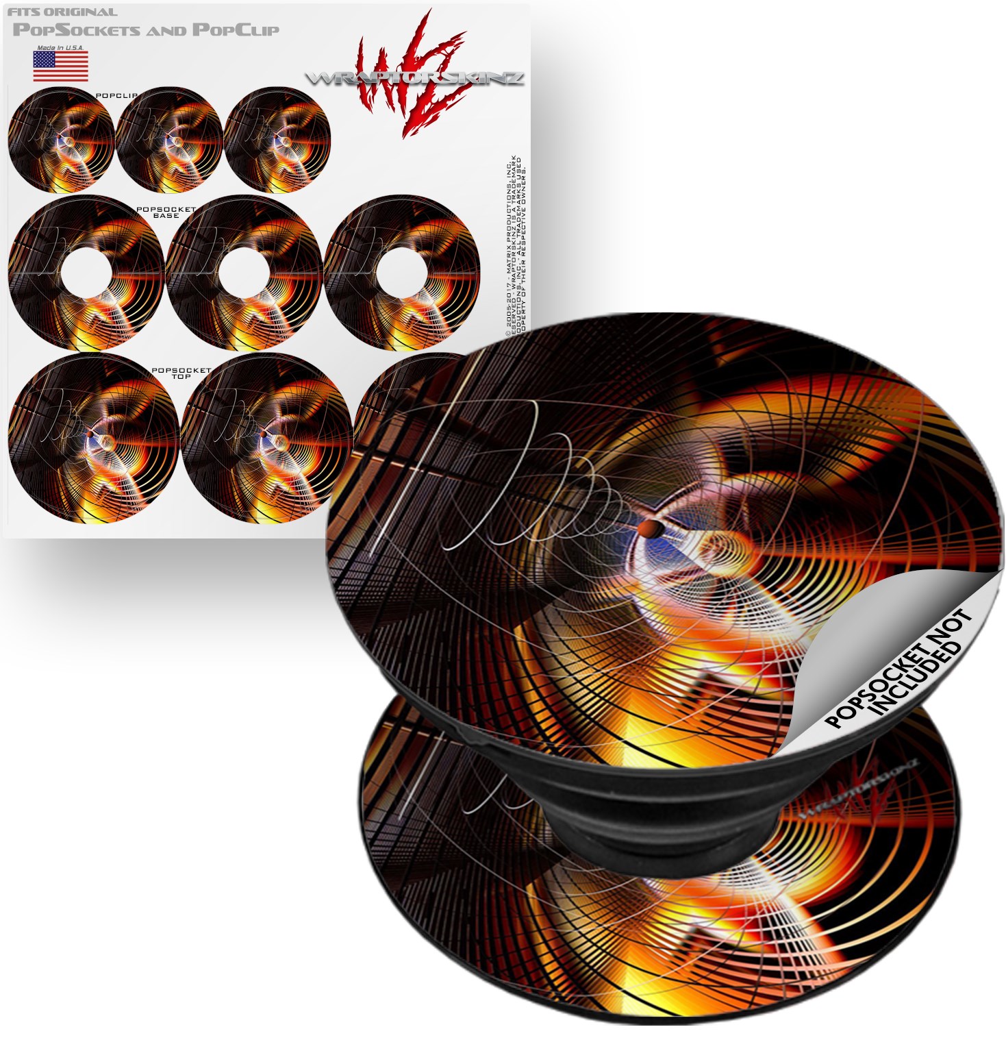 WraptorSkinz® skin decals are printed using superb photo quality designs and vibrant colors printed with special fade resistant inks that last even in direct sun for years. WraptorSkinz® are a composite of two layers of commercial grade materials. The bottom layer is a soft, flexible vinyl with a special removable adhesive that is easily positioned, applied without air bubbles. Next, we print the bottom layer with UV protected, fade resistant inks that deliver superb photo quality designs in vibrant colors. Finally, we bond a professional grade laminate over the entire skin adding a glossy protective finish. This WraptorSkinz skin accessory is not affiliated with, endorsed by and is in no way connected with the PopSocket products or brand.