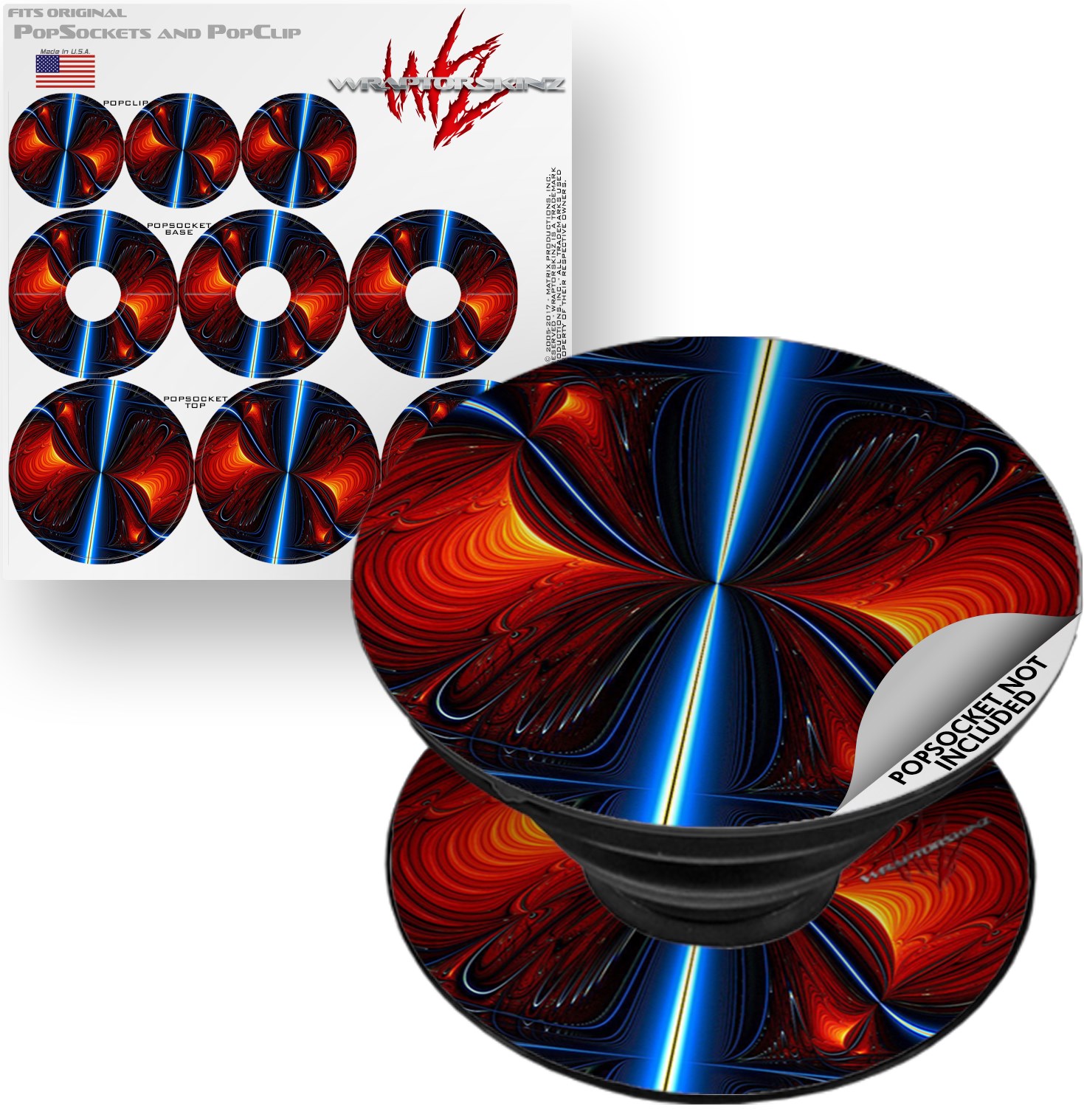 WraptorSkinz® skin decals are printed using superb photo quality designs and vibrant colors printed with special fade resistant inks that last even in direct sun for years. WraptorSkinz® are a composite of two layers of commercial grade materials. The bottom layer is a soft, flexible vinyl with a special removable adhesive that is easily positioned, applied without air bubbles. Next, we print the bottom layer with UV protected, fade resistant inks that deliver superb photo quality designs in vibrant colors. Finally, we bond a professional grade laminate over the entire skin adding a glossy protective finish. This WraptorSkinz skin accessory is not affiliated with, endorsed by and is in no way connected with the PopSocket products or brand.
