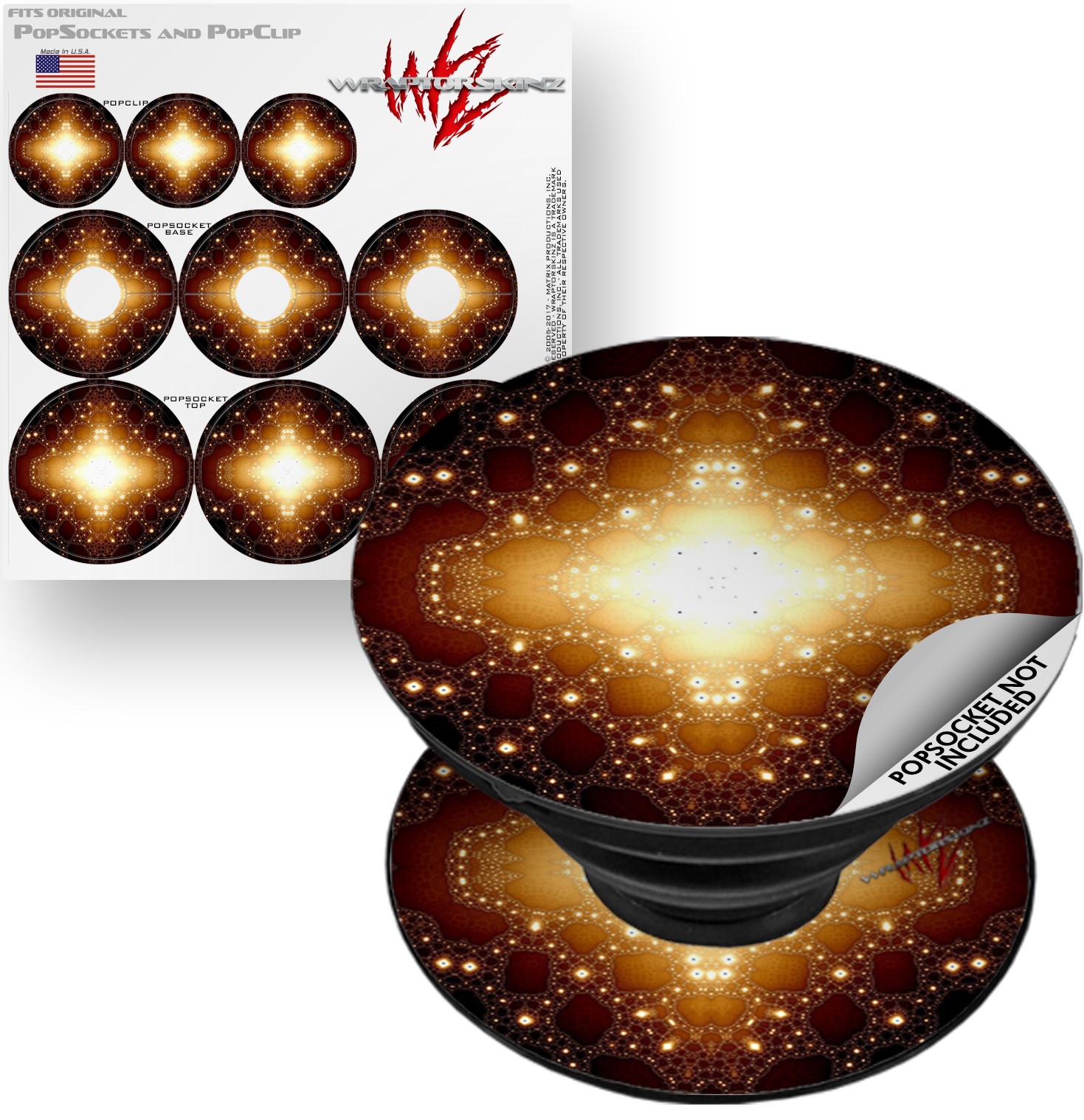 WraptorSkinz® skin decals are printed using superb photo quality designs and vibrant colors printed with special fade resistant inks that last even in direct sun for years. WraptorSkinz® are a composite of two layers of commercial grade materials. The bottom layer is a soft, flexible vinyl with a special removable adhesive that is easily positioned, applied without air bubbles. Next, we print the bottom layer with UV protected, fade resistant inks that deliver superb photo quality designs in vibrant colors. Finally, we bond a professional grade laminate over the entire skin adding a glossy protective finish. This WraptorSkinz skin accessory is not affiliated with, endorsed by and is in no way connected with the PopSocket products or brand.