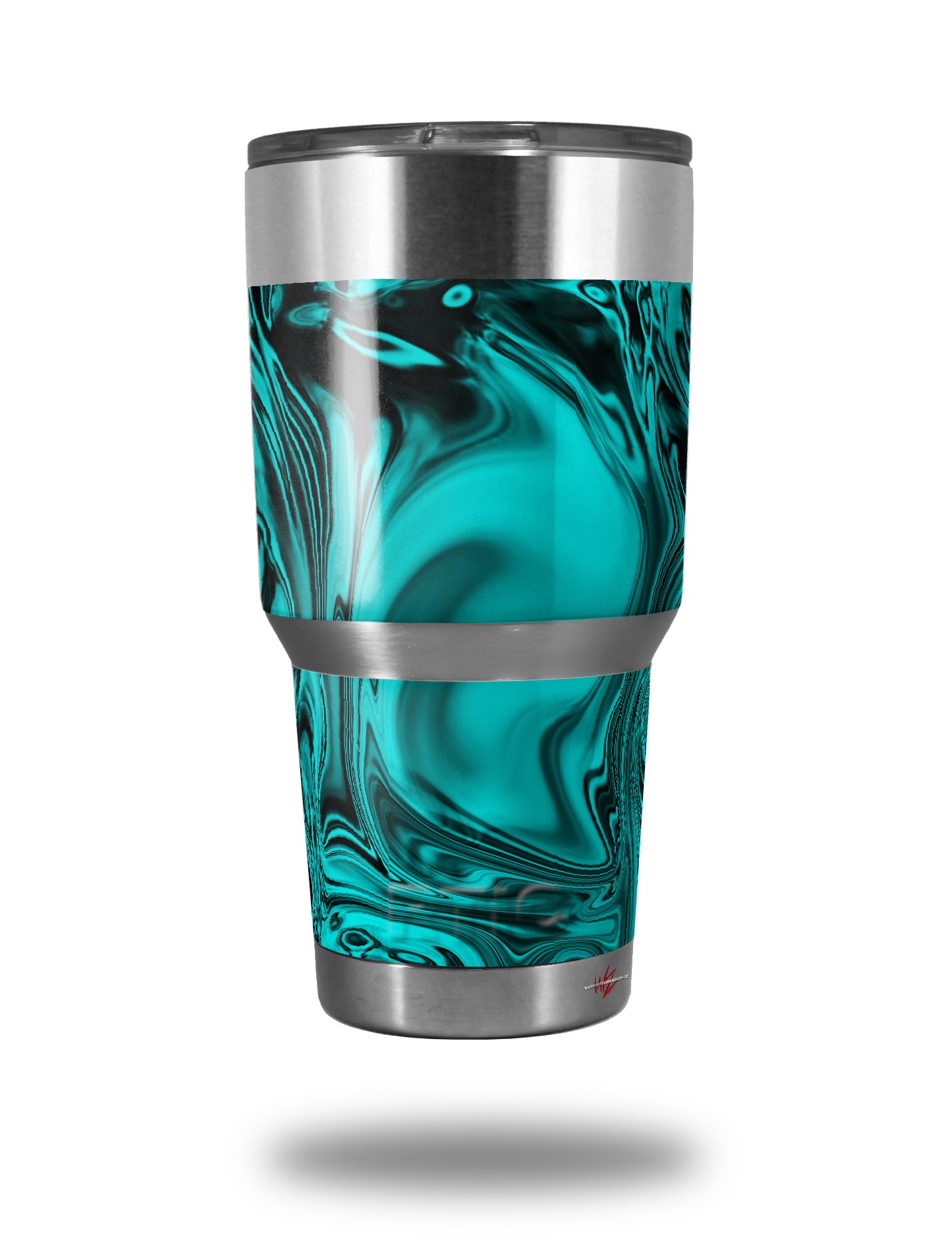 WraptorSkinz Skin Wrap compatible with RTIC 30oz ORIGINAL 2017 AND OLDER Tumblers Liquid Metal Chrome Neon Teal (TUMBLER NOT INCLUDED)