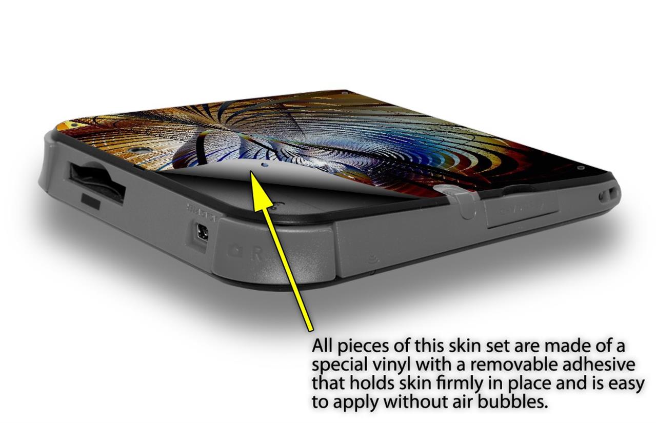 WraptorSkinz® are self adhering vinyl skins that help prevent scratches and look great doing it. Unlike bulky silicon, plastic or metal cases and faceplates, WraptorSkinz® are designed to be thin and very tough. WraptorSkinz® are a composite of two layers of commercial grade materials. The bottom layer is a soft, flexible vinyl with a special removable adhesive that is easily positioned, applied without air bubbles. Next we print the bottom layer with UV protected, fade resistant inks that deliver superb photo quality designs in vibrant colors. Finally we bond a professional grade laminate over the entire skin adding a glossy protective finish.