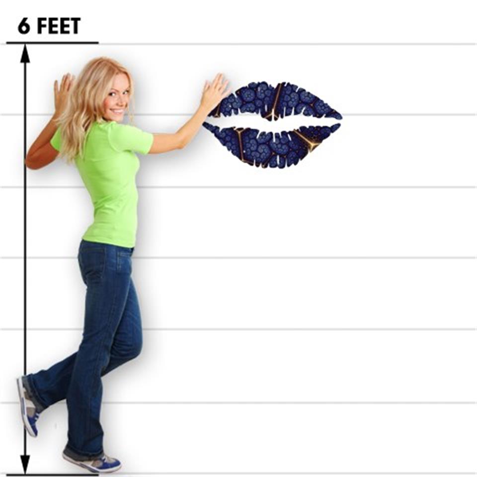 Linear Cosmos Blue - Kissing Lips Fabric Wall Skin Decal measures 24x15 inches
