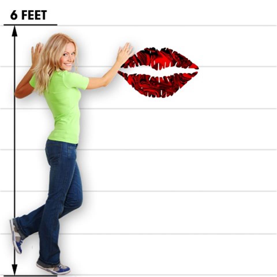 Liquid Metal Chrome Red - Kissing Lips Fabric Wall Skin Decal measures 24x15 inches