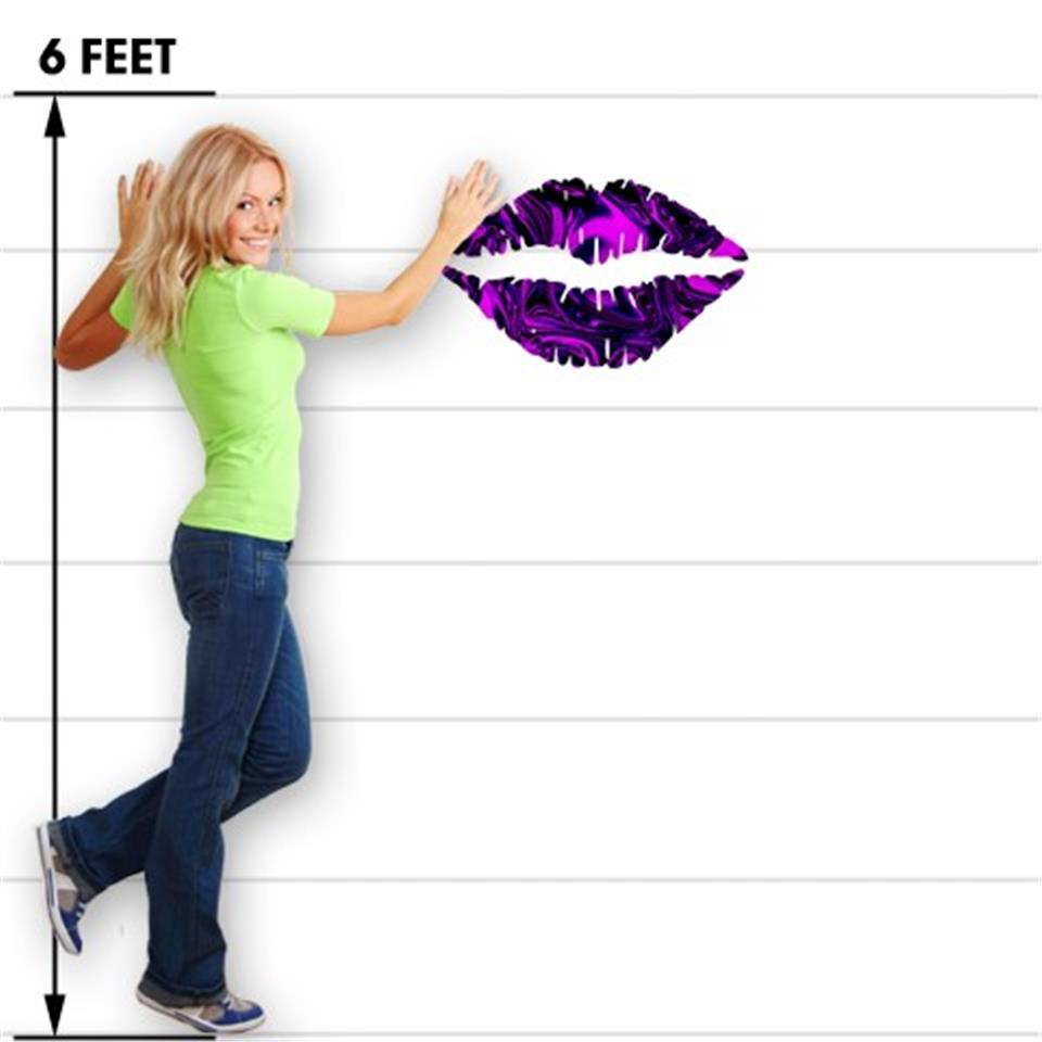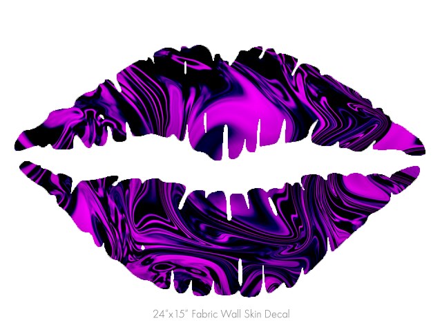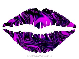 Liquid Metal Chrome Purple - Kissing Lips Fabric Wall Skin Decal measures 24x15 inches