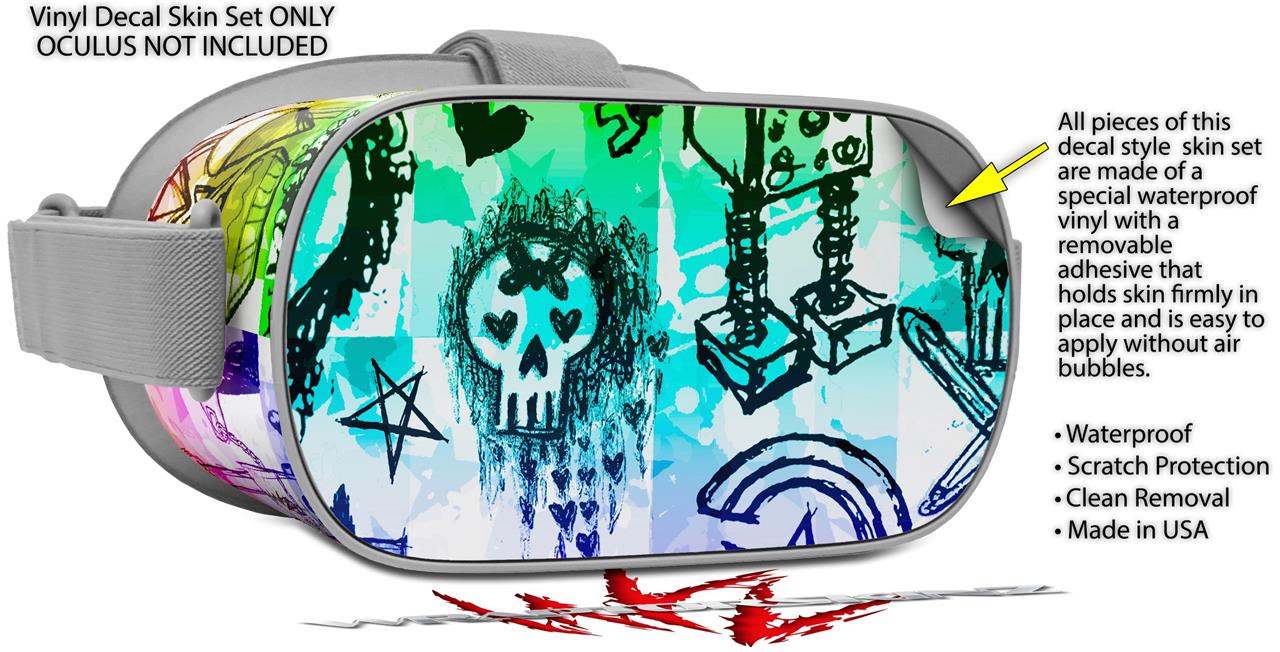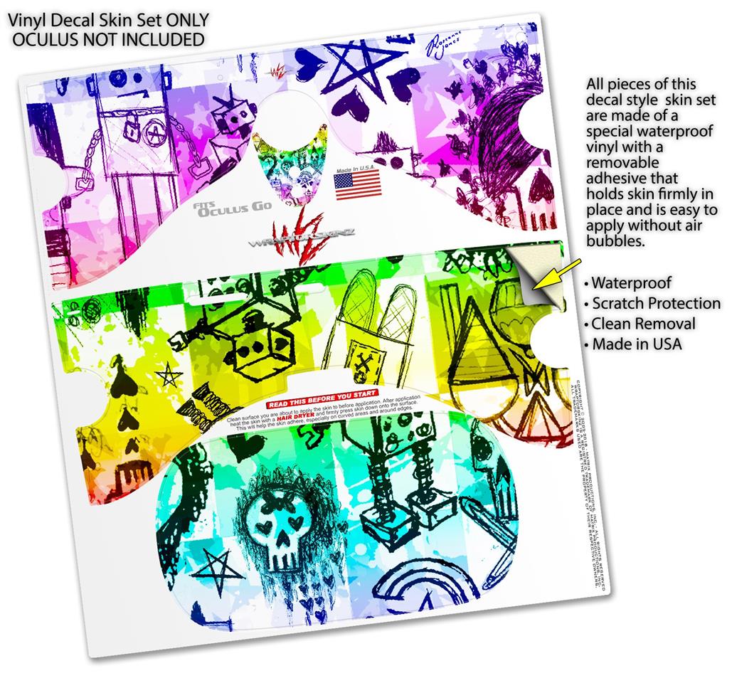 Decal style Skin Wrap compatible with Oculus Go Headset - Scene Kid Sketches Rainbow (OCULUS NOT INCLUDED)