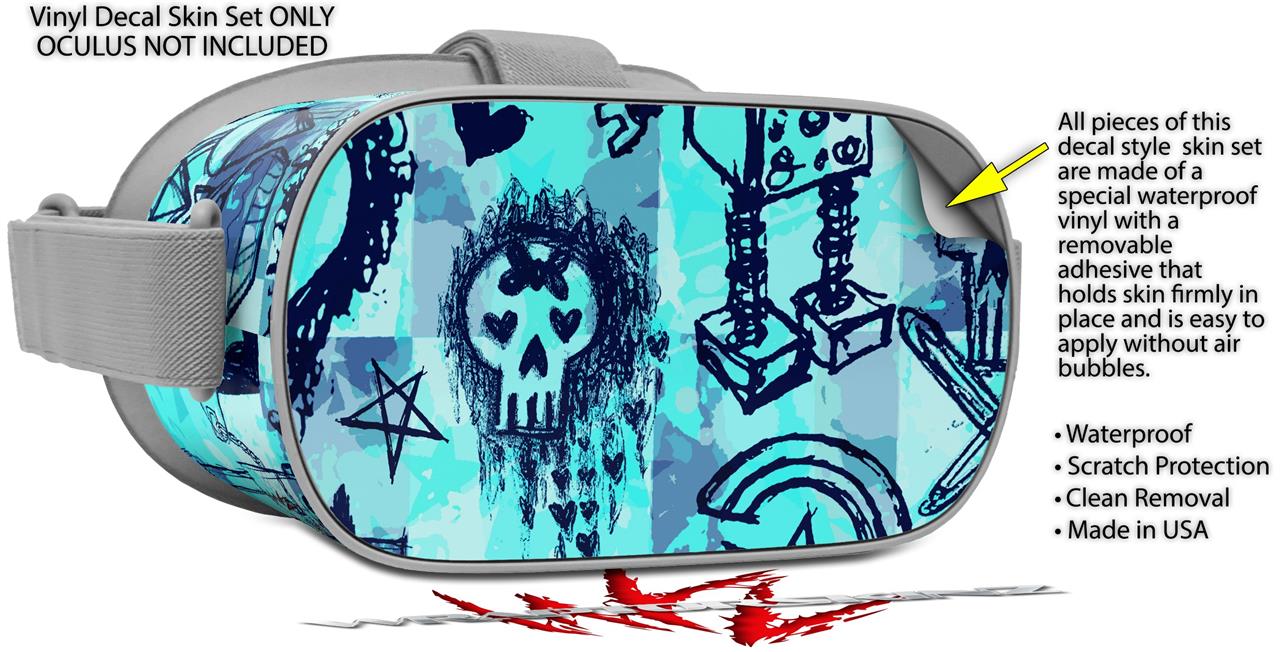 Decal style Skin Wrap compatible with Oculus Go Headset - Scene Kid Sketches Blue (OCULUS NOT INCLUDED)