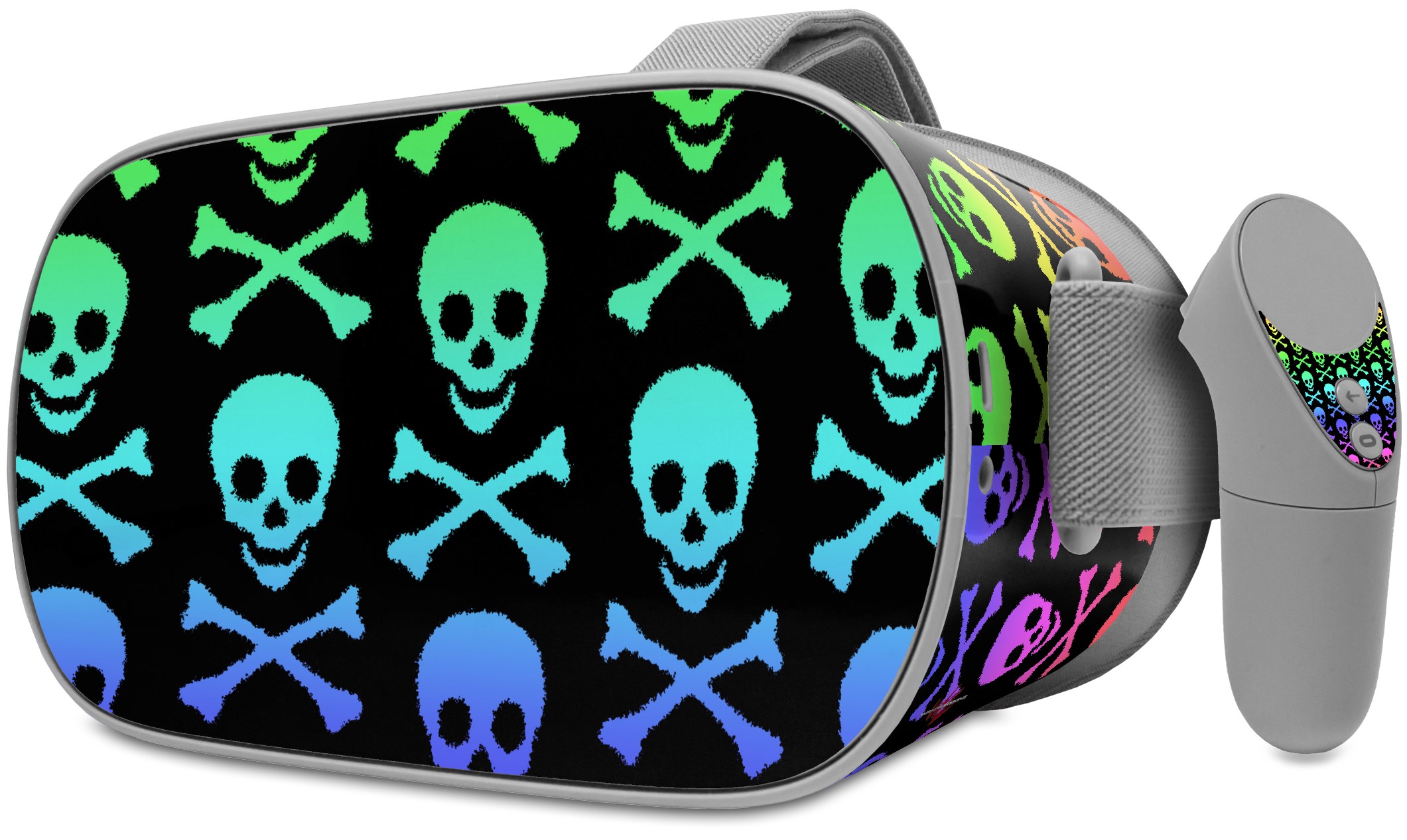 Decal style Skin Wrap compatible with Oculus Go Headset - Skull and Crossbones Rainbow (OCULUS NOT INCLUDED)