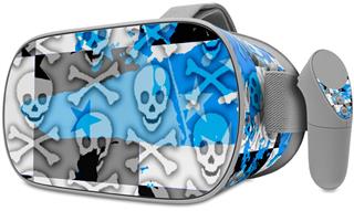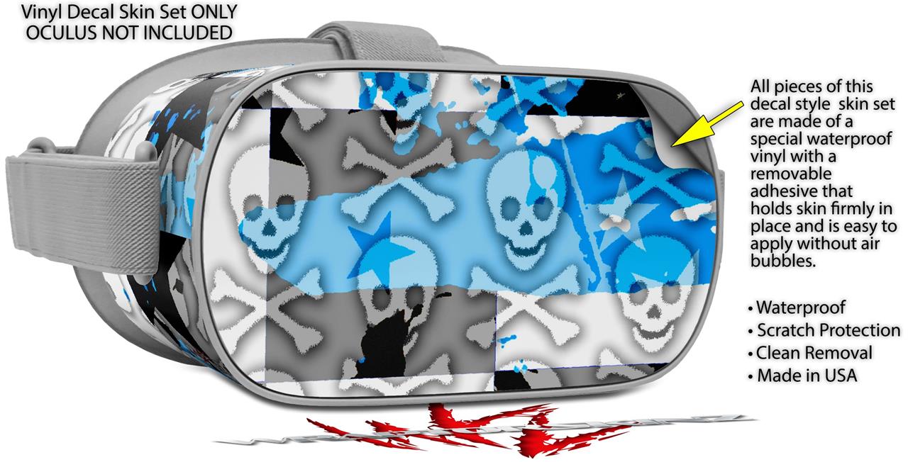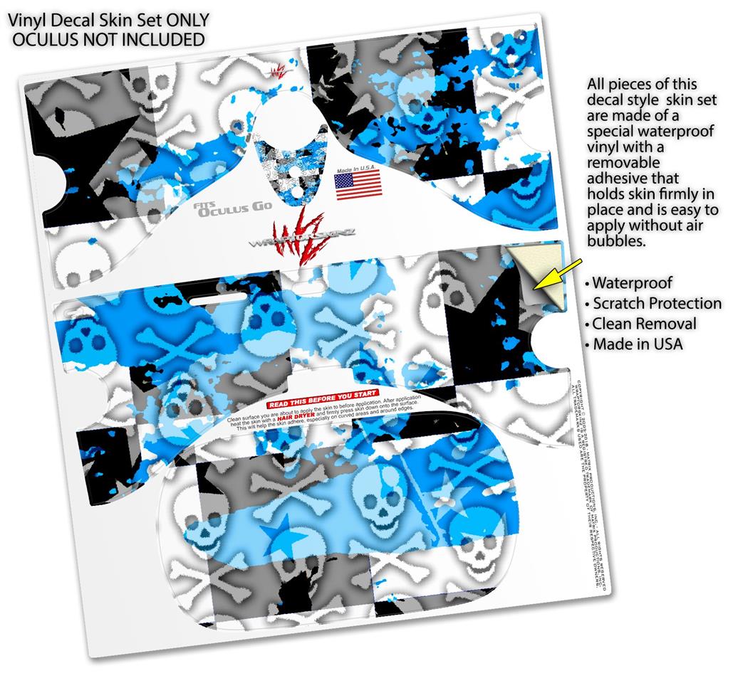 Decal style Skin Wrap compatible with Oculus Go Headset - Checker Skull Splatter Blue (OCULUS NOT INCLUDED)