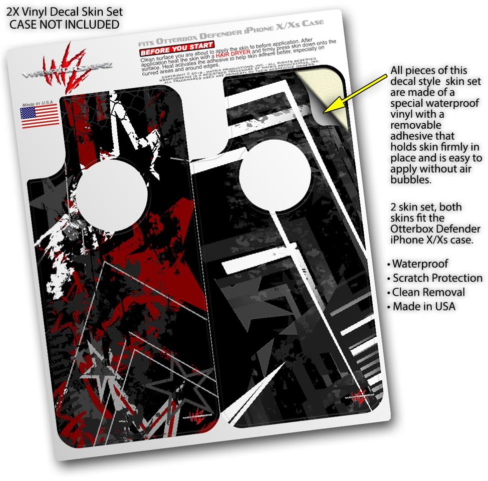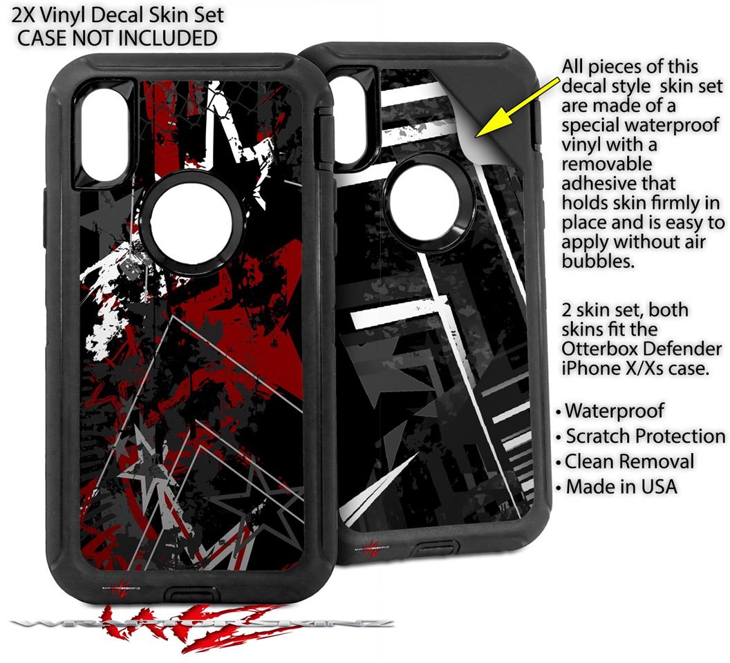 2x Decal style Skin Wrap Set compatible with Otterbox Defender iPhone X and Xs Case - Baja 0003 Red Dark (CASE NOT INCLUDED)