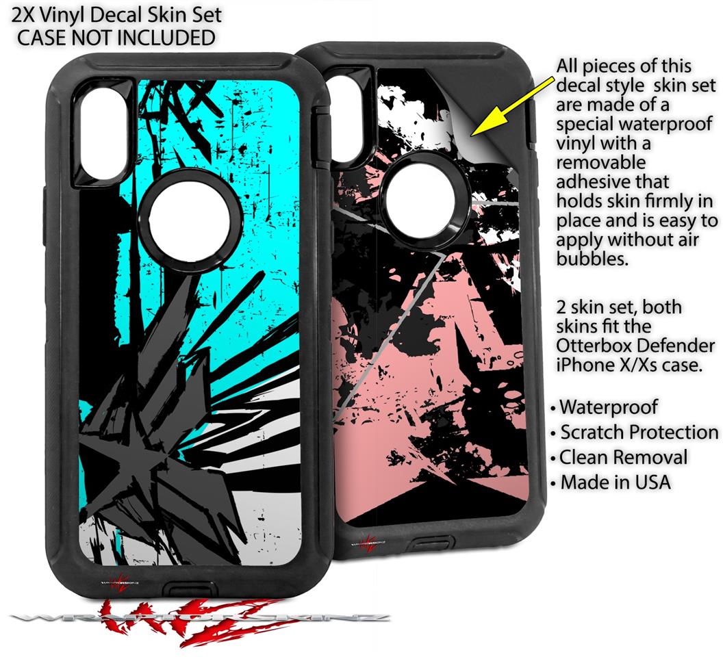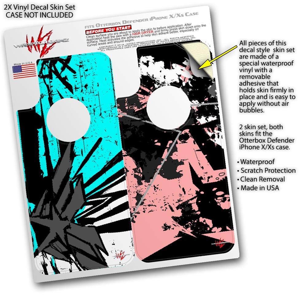 • CASE NOT INCLUDED - 2 Skins cover back surface of 2 Otterbox Defender iPhone X / Xs cases as pictured.
