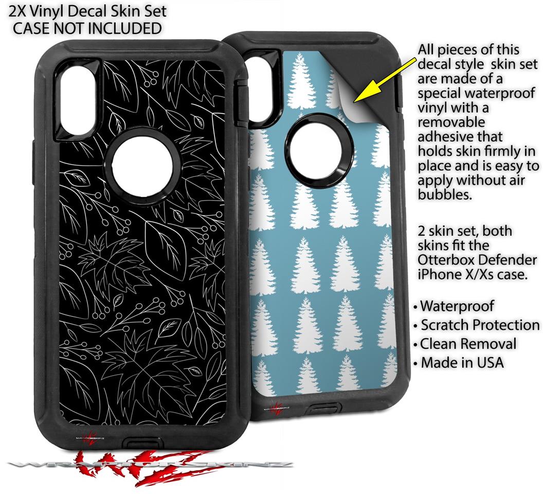 2x Decal style Skin Wrap Set compatible with Otterbox Defender iPhone X and Xs Case - Fall White (CASE NOT INCLUDED)