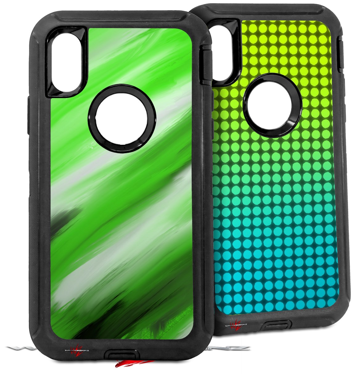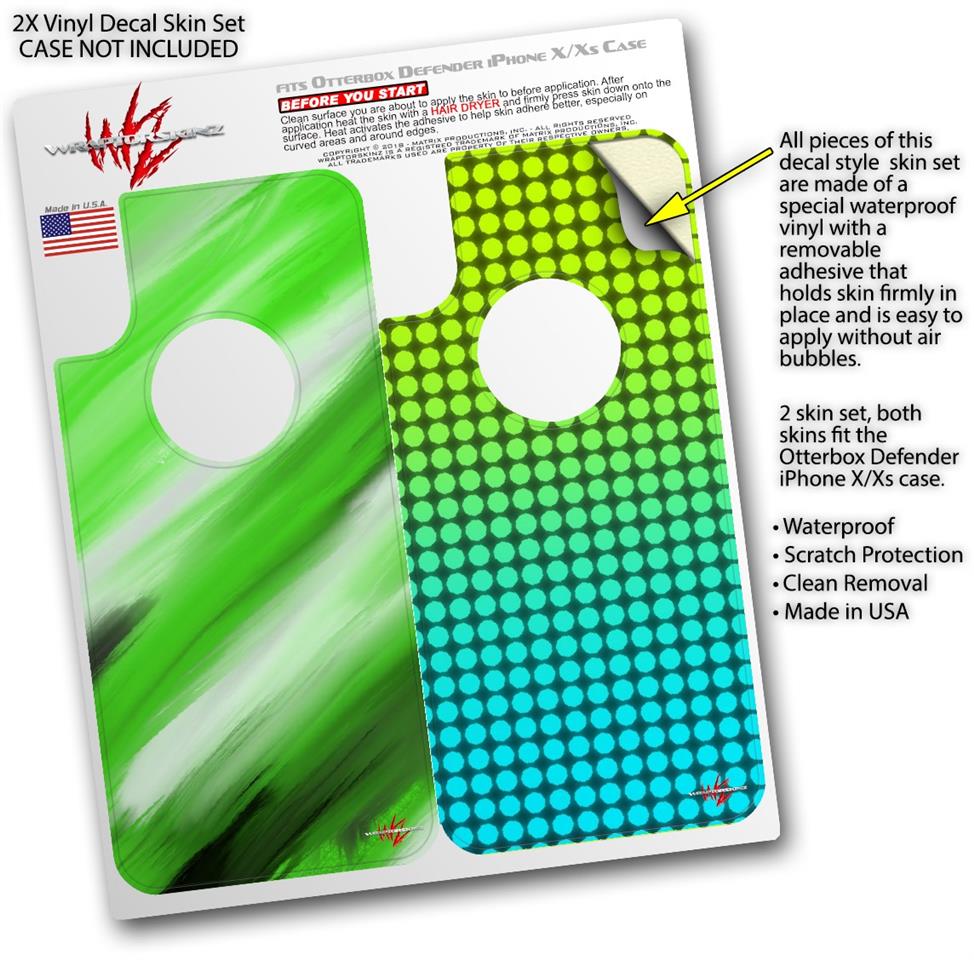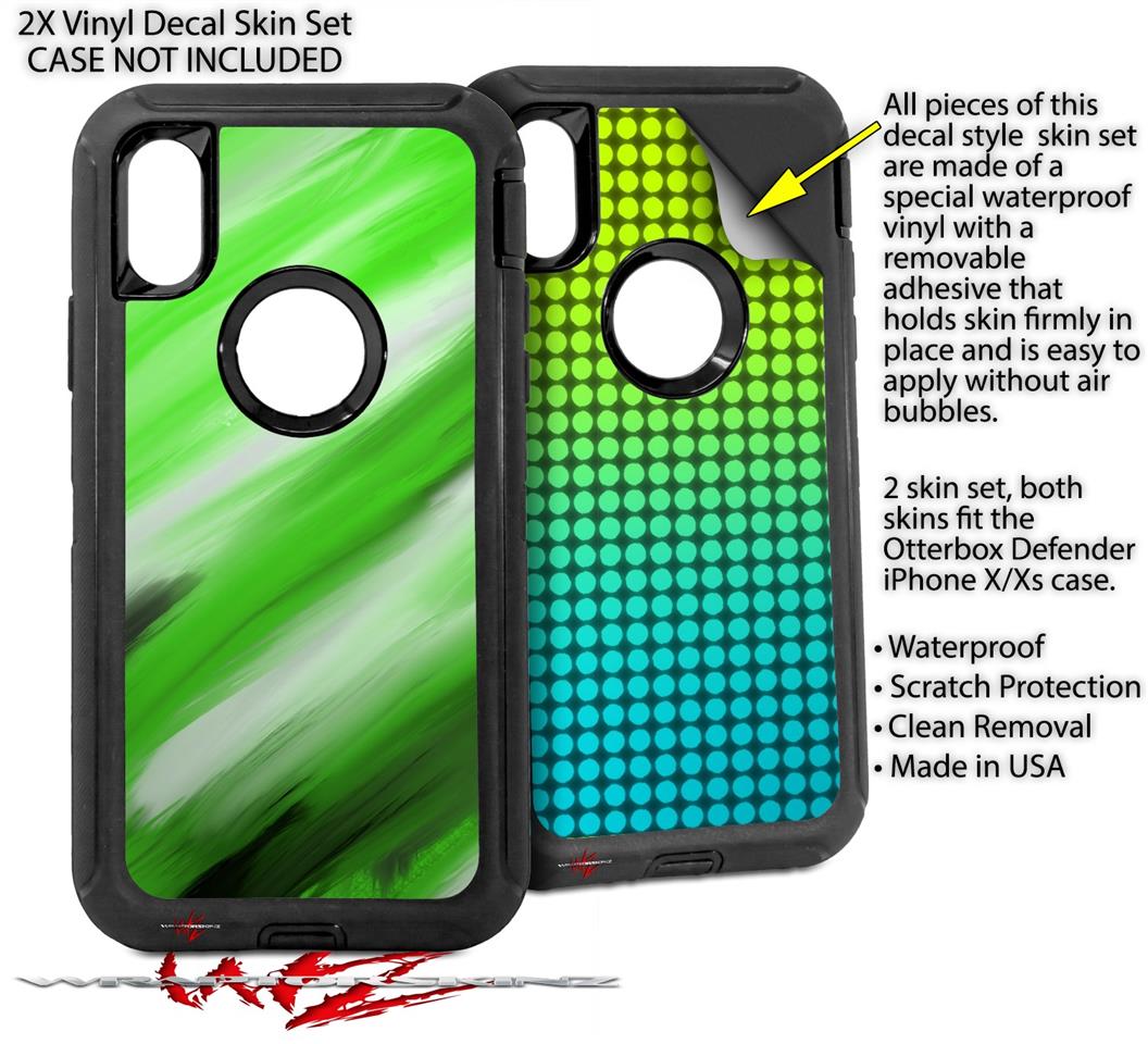 2x Decal style Skin Wrap Set compatible with Otterbox Defender iPhone X and Xs Case - Paint Blend Green (CASE NOT INCLUDED)