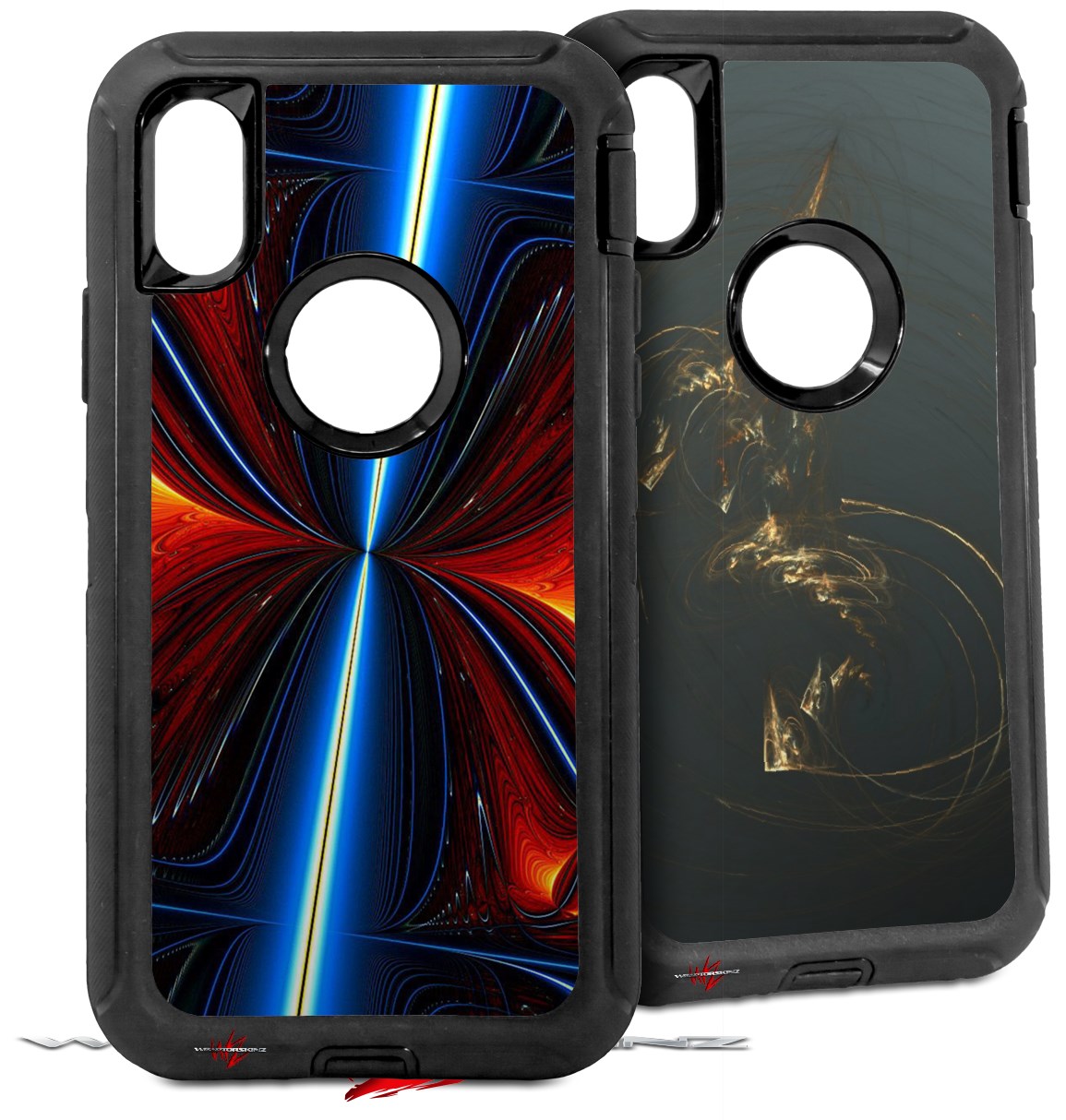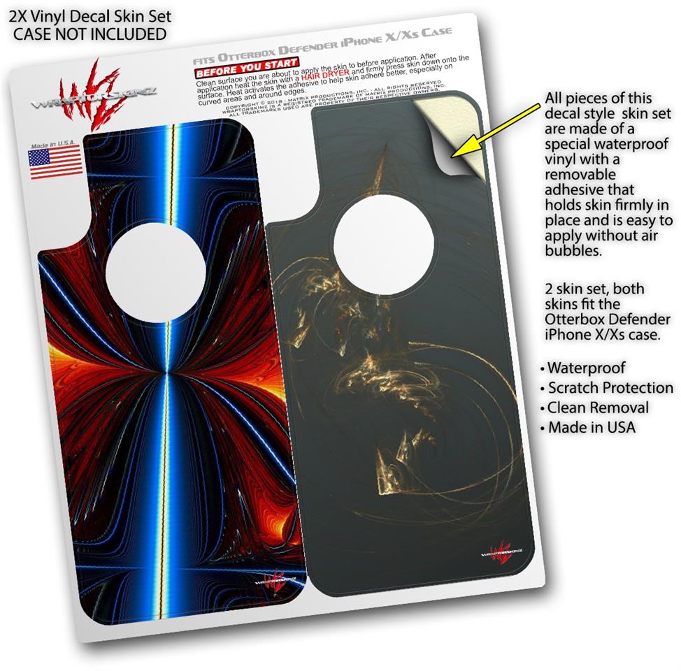 • CASE NOT INCLUDED - 2 Skins cover back surface of 2 Otterbox Defender iPhone X / Xs cases as pictured.