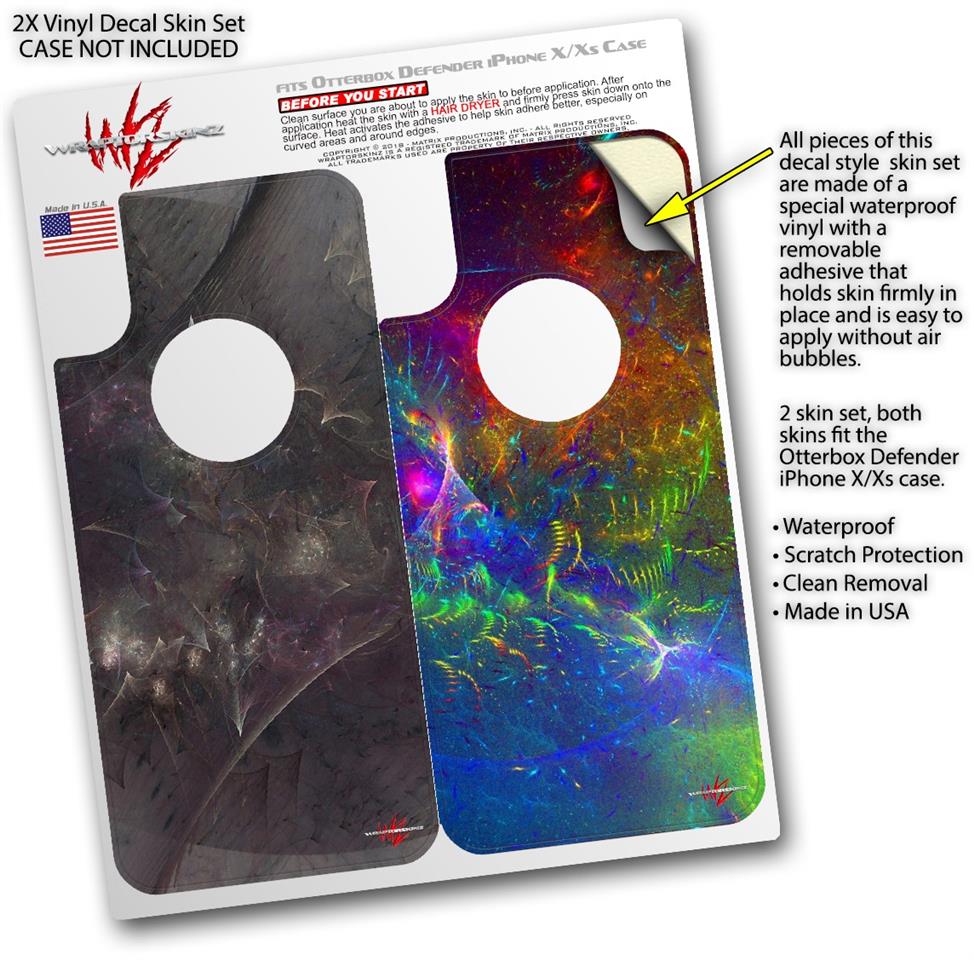WraptorSkinz® skin wraps compatible with Otterbox Defender iPhone X / Xs Cases are printed using superb photo quality designs and vibrant colors printed with special fade resistant inks that last even in direct sun for years. WraptorSkinz are a composite of two layers of commercial grade materials. The bottom layer is a soft, flexible vinyl with a special removable adhesive that is easily positioned, applied without air bubbles. Next, we print the bottom layer with UV protected, fade resistant inks that deliver superb photo quality designs in vibrant colors. Finally, we bond a professional grade laminate over the entire skin adding a glossy protective finish. This product is not affiliated with or endorsed by Otterbox.