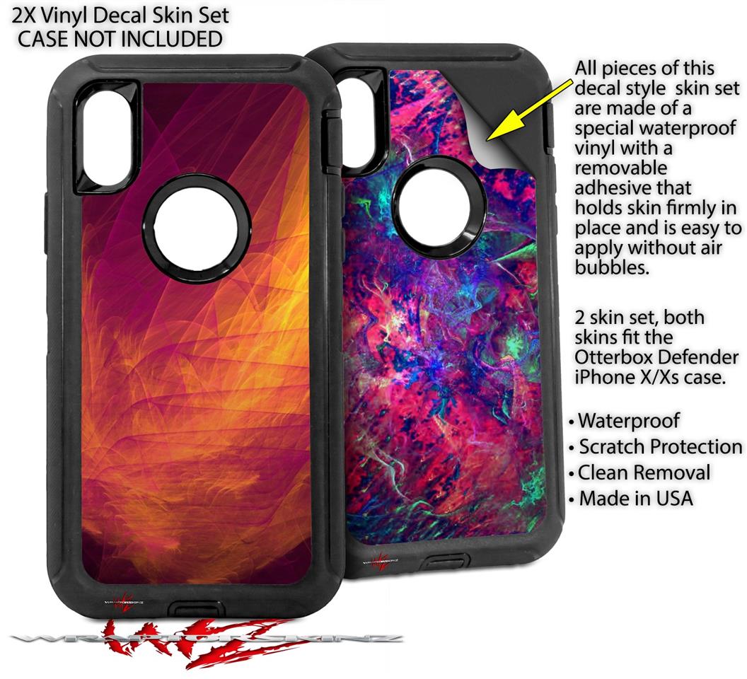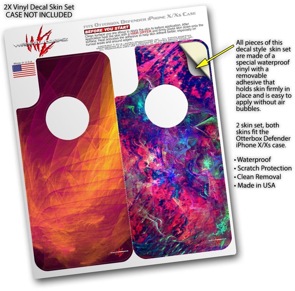 2x Decal style Skin Wrap Set compatible with Otterbox Defender iPhone X and Xs Case - Eruption (CASE NOT INCLUDED)