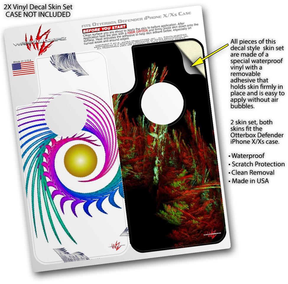 2x Decal style Skin Wrap Set compatible with Otterbox Defender iPhone X and Xs Case - Cover (CASE NOT INCLUDED)