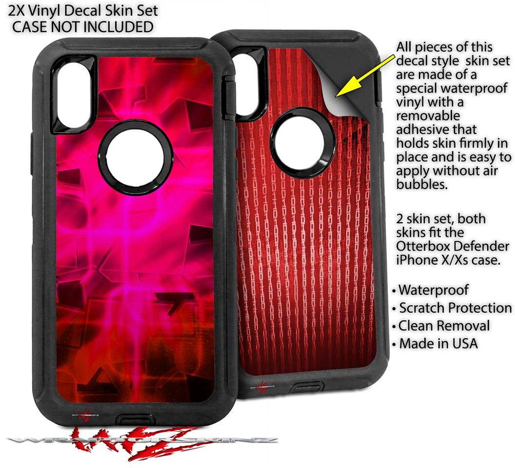 2x Decal style Skin Wrap Set compatible with Otterbox Defender iPhone X and Xs Case - Cubic Shards Red (CASE NOT INCLUDED)
