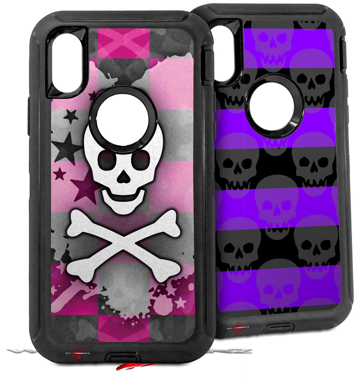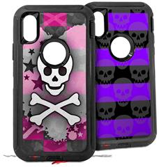 2x Decal style Skin Wrap Set compatible with Otterbox Defender iPhone X and Xs Case - Princess Skull Heart Pink (CASE NOT INCLUDED)