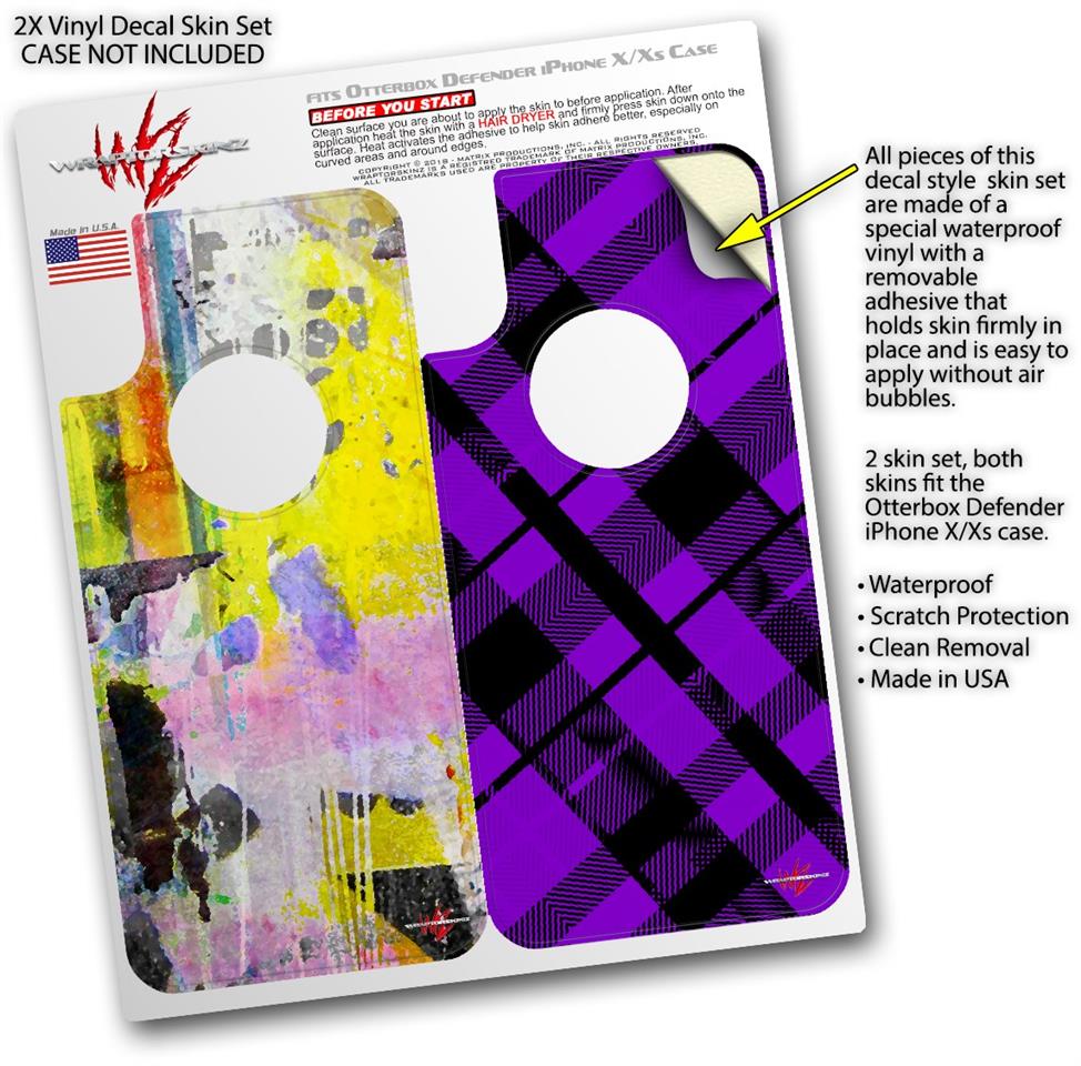 2x Decal style Skin Wrap Set compatible with Otterbox Defender iPhone X and Xs Case - Graffiti Pop (CASE NOT INCLUDED)