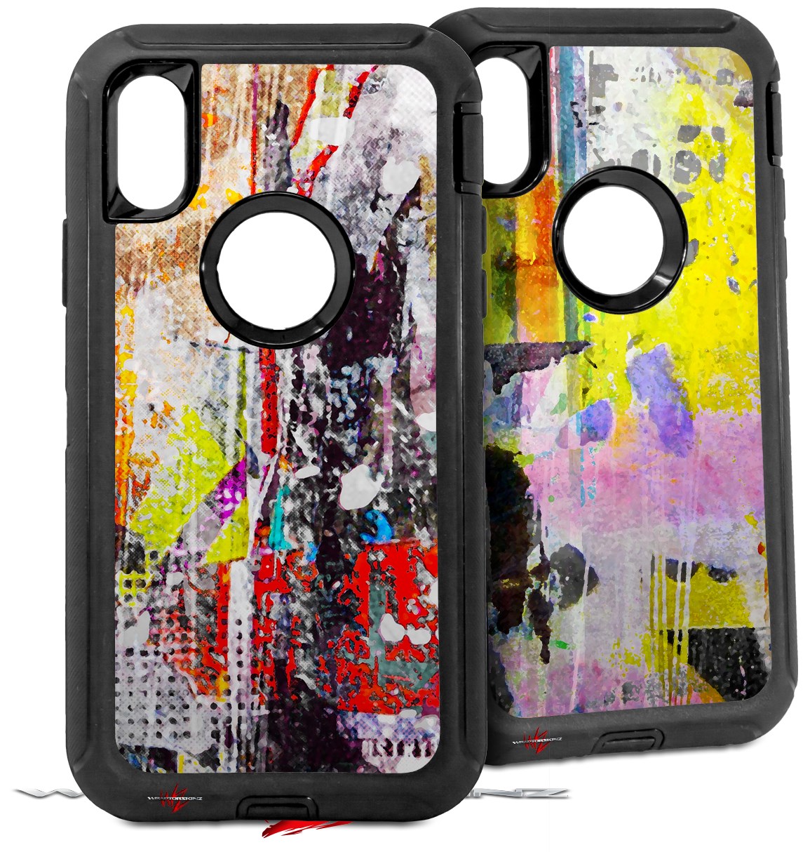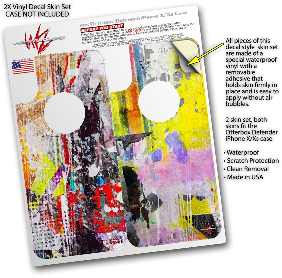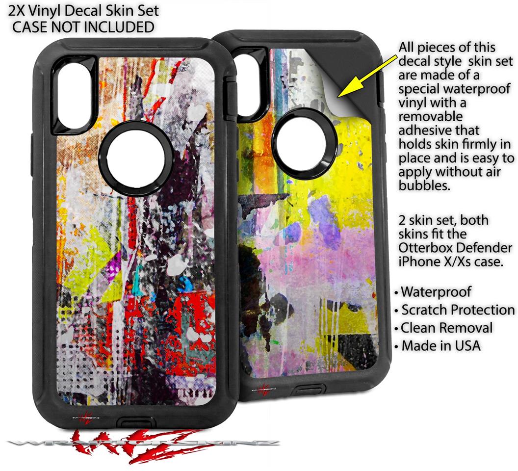 2x Decal style Skin Wrap Set compatible with Otterbox Defender iPhone X and Xs Case - Abstract Graffiti (CASE NOT INCLUDED)