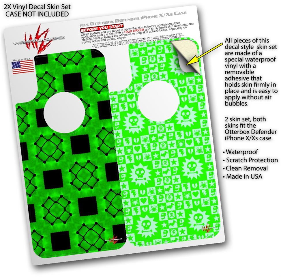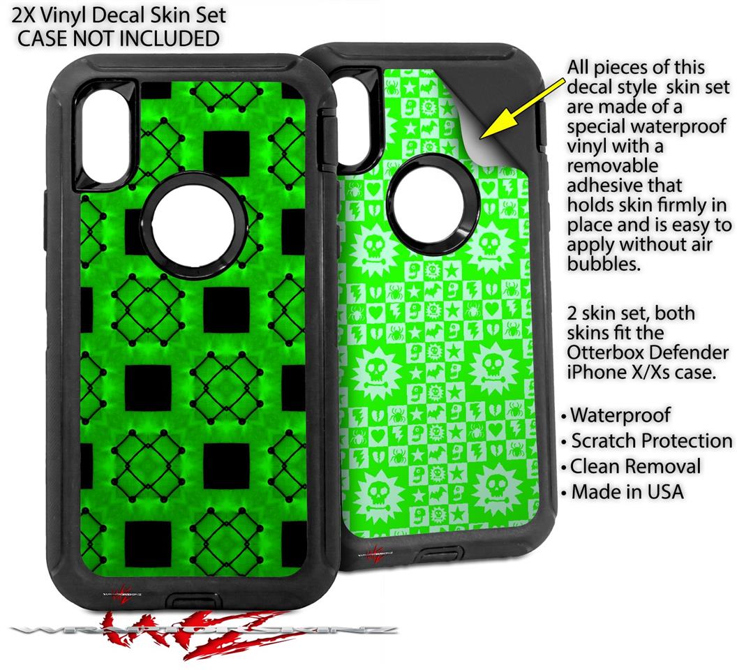 2x Decal style Skin Wrap Set compatible with Otterbox Defender iPhone X and Xs Case - Criss Cross Green (CASE NOT INCLUDED)