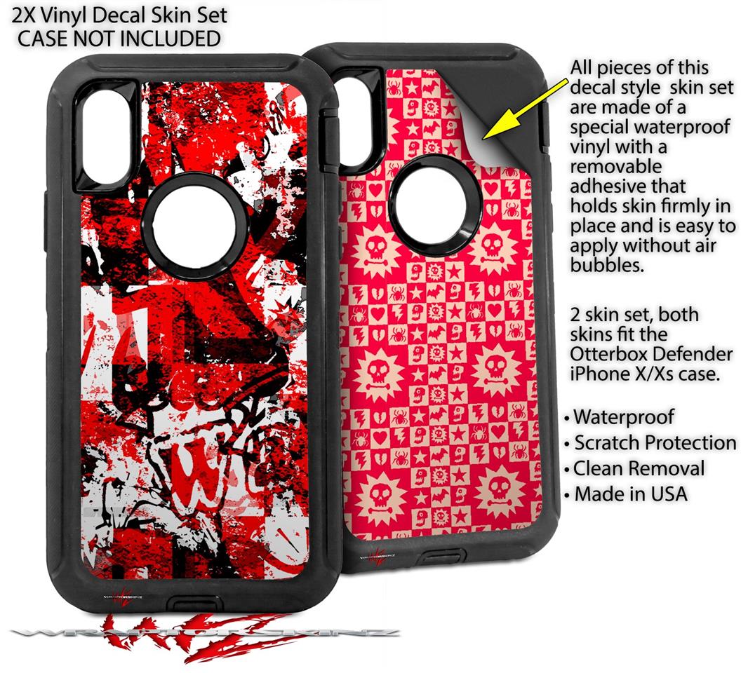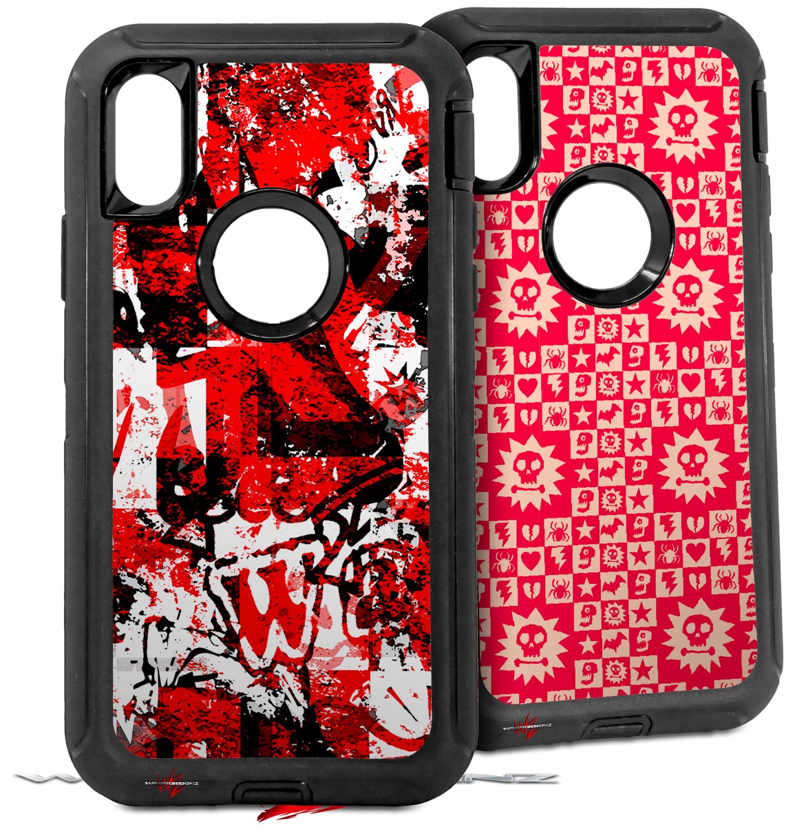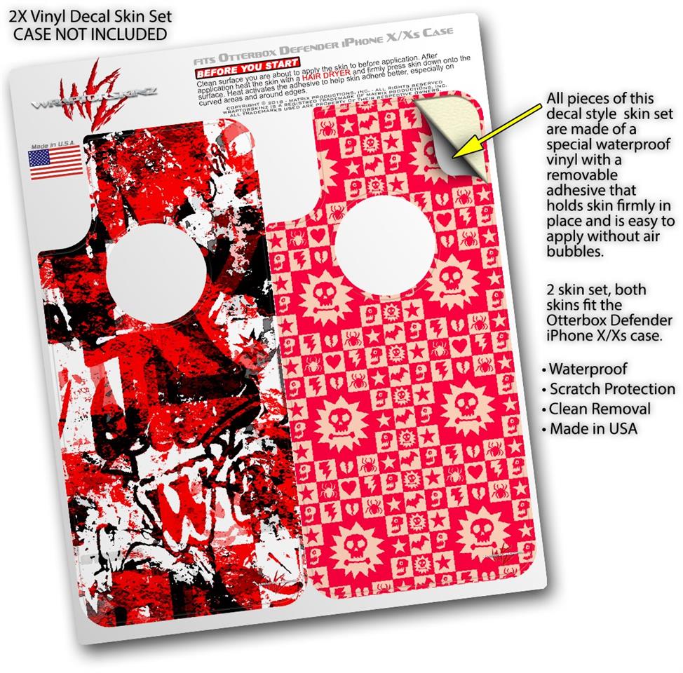 2x Decal style Skin Wrap Set compatible with Otterbox Defender iPhone X and Xs Case - Red Graffiti (CASE NOT INCLUDED)