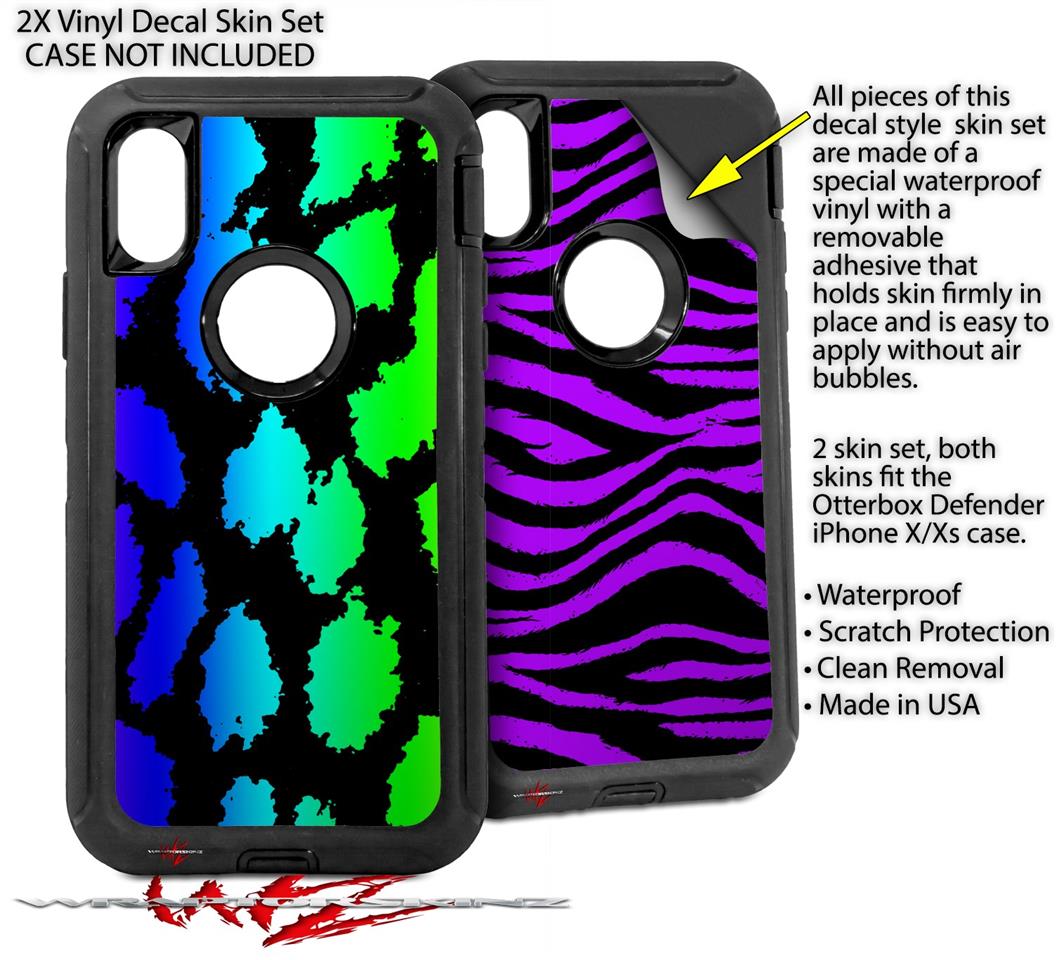2x Decal style Skin Wrap Set compatible with Otterbox Defender iPhone X and Xs Case - Rainbow Leopard (CASE NOT INCLUDED)