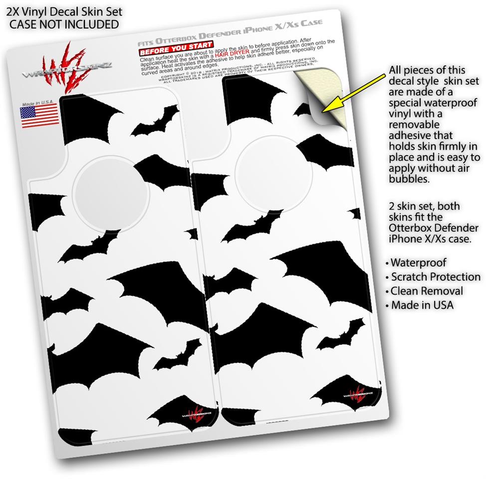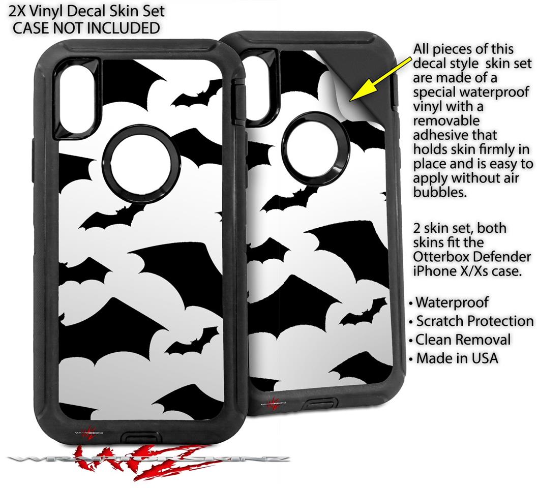 2x Decal style Skin Wrap Set compatible with Otterbox Defender iPhone X and Xs Case - Deathrock Bats (CASE NOT INCLUDED)