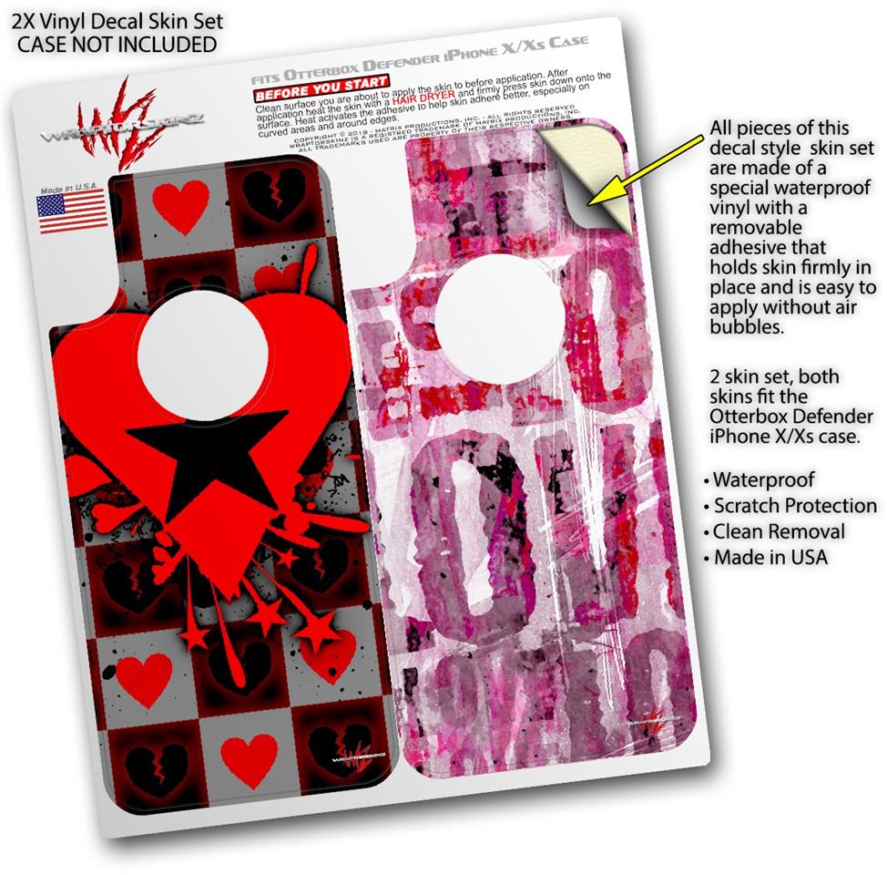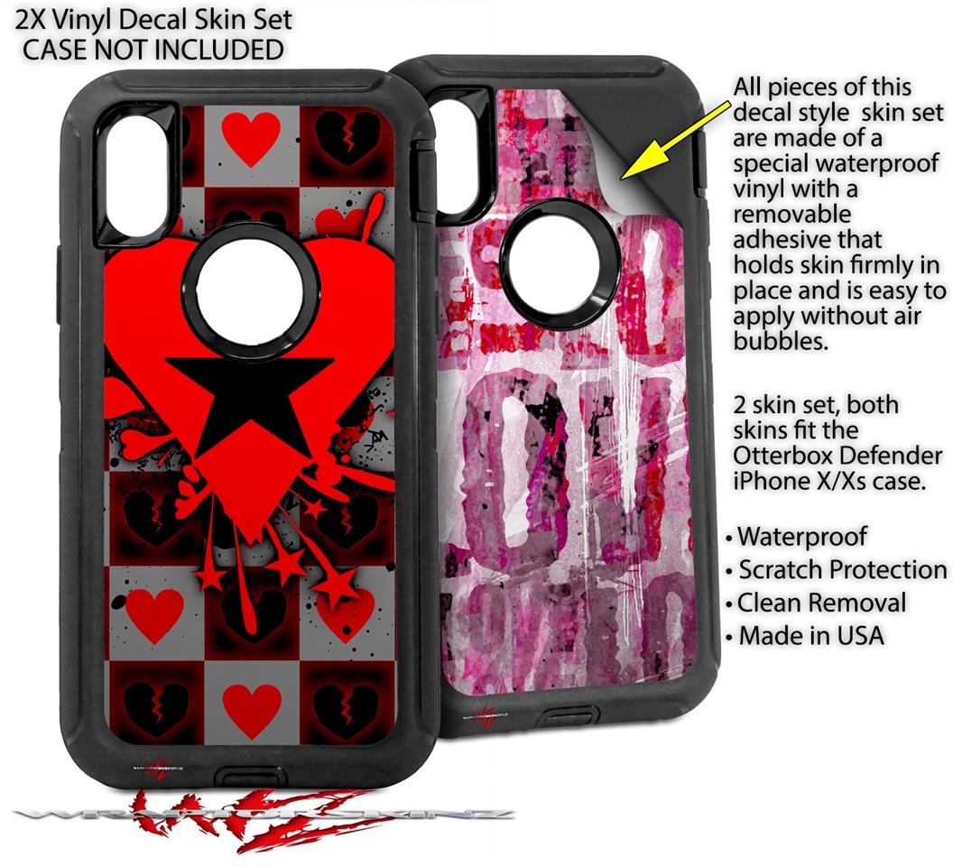 2x Decal style Skin Wrap Set compatible with Otterbox Defender iPhone X and Xs Case - Emo Star Heart (CASE NOT INCLUDED)