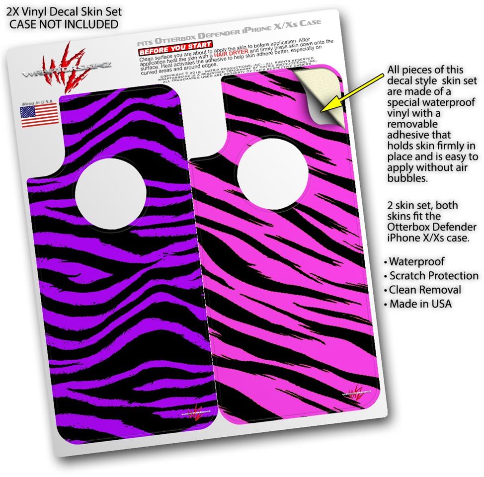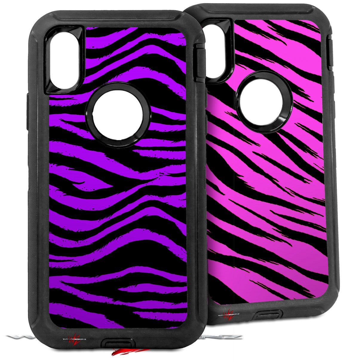 2x Decal style Skin Wrap Set compatible with Otterbox Defender iPhone X and Xs Case - Purple Zebra (CASE NOT INCLUDED)