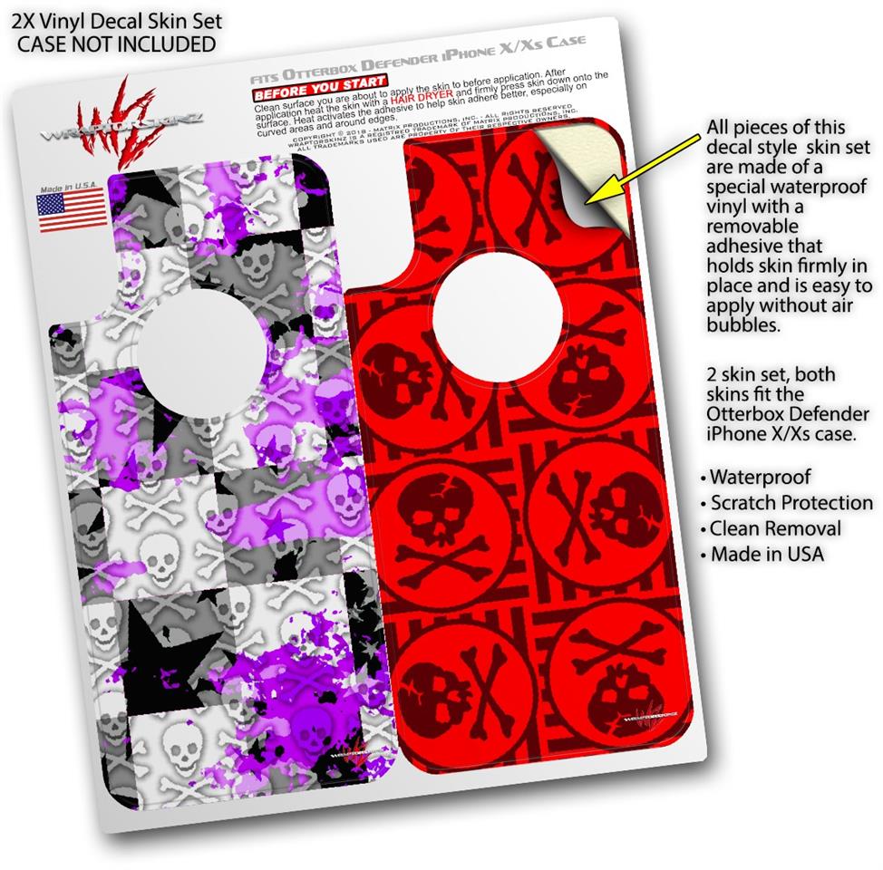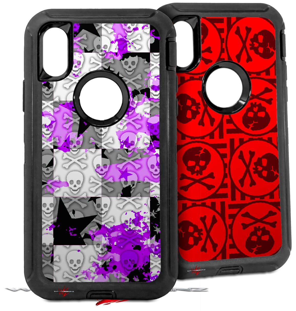 2x Decal style Skin Wrap Set compatible with Otterbox Defender iPhone X and Xs Case - Purple Checker Skull Splatter (CASE NOT INCLUDED)