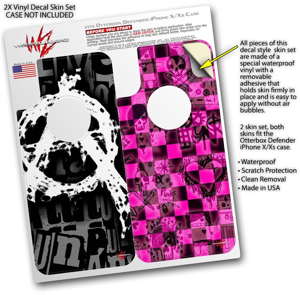 2x Decal style Skin Wrap Set compatible with Otterbox Defender iPhone X and Xs Case - Anarchy (CASE NOT INCLUDED)