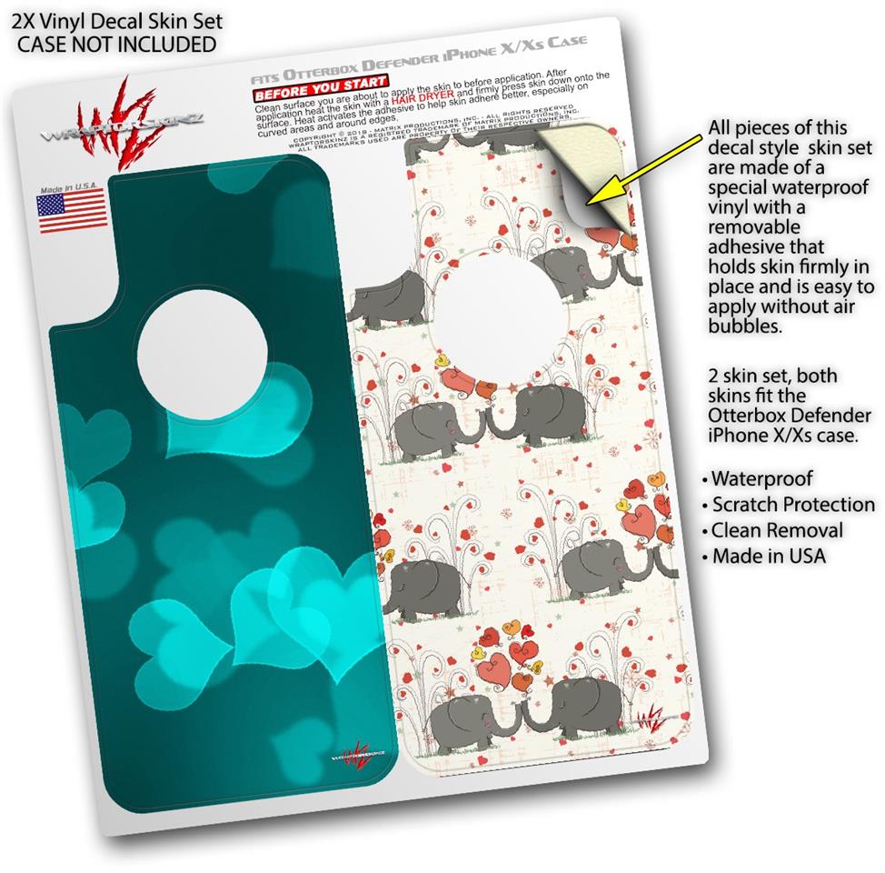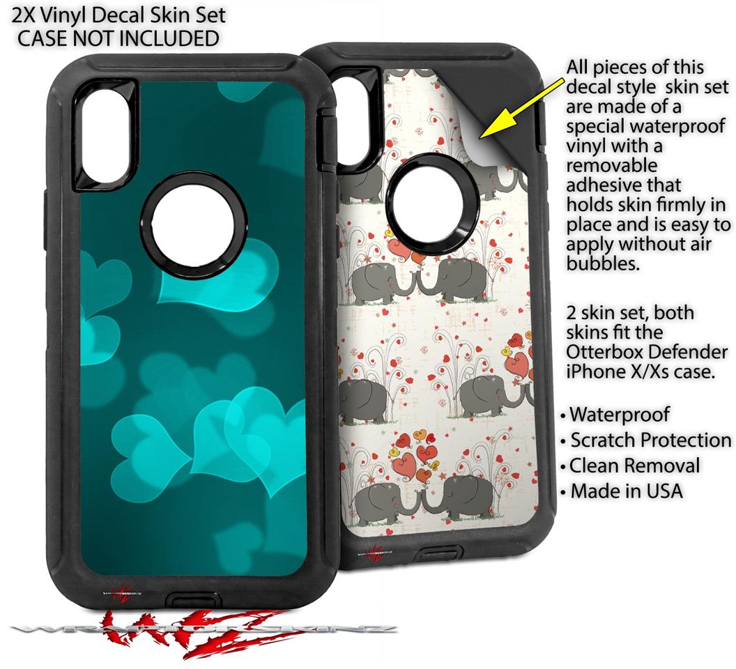 • CASE NOT INCLUDED - 2 Skins cover back surface of 2 Otterbox Defender iPhone X / Xs cases as pictured.