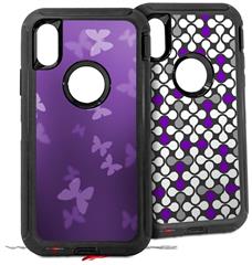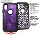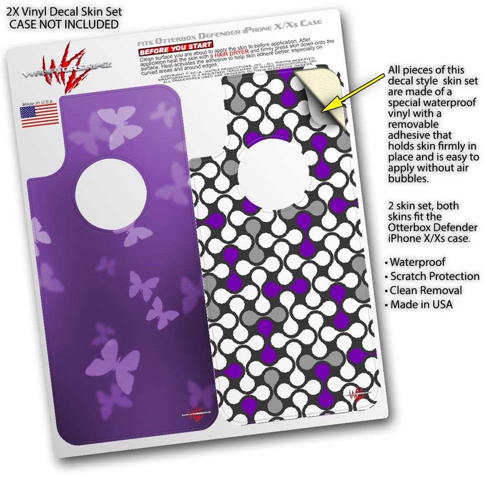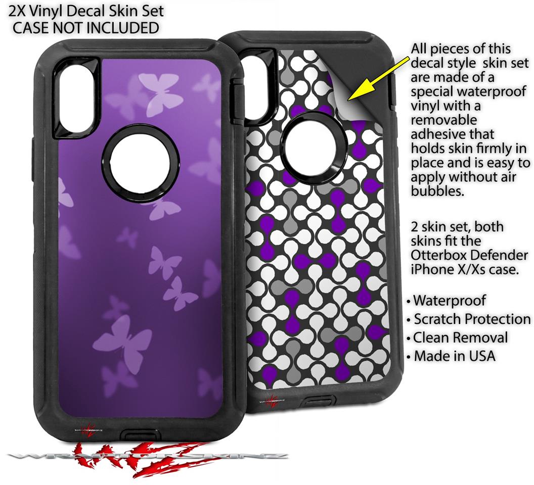 2x Decal style Skin Wrap Set compatible with Otterbox Defender iPhone X and Xs Case - Bokeh Butterflies Purple (CASE NOT INCLUDED)