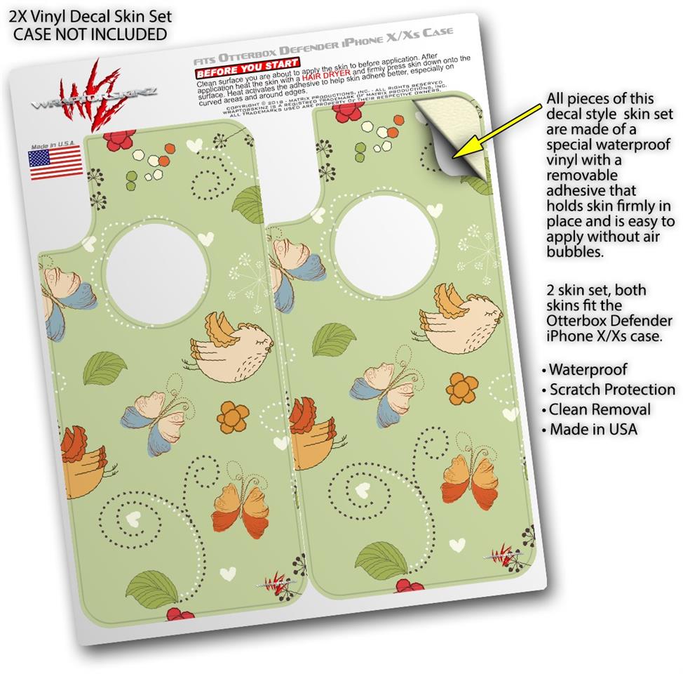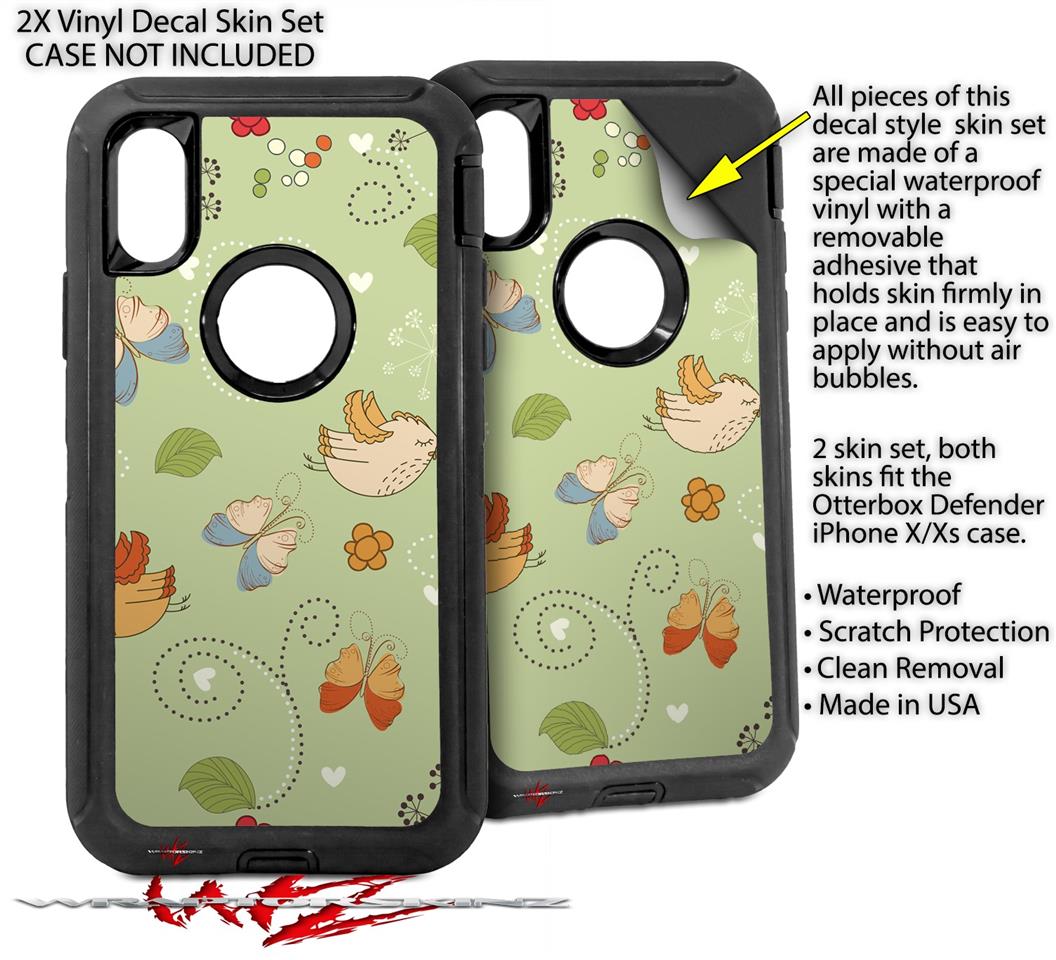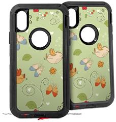 2x Decal style Skin Wrap Set compatible with Otterbox Defender iPhone X and Xs Case - Birds Butterflies and Flowers (CASE NOT INCLUDED)