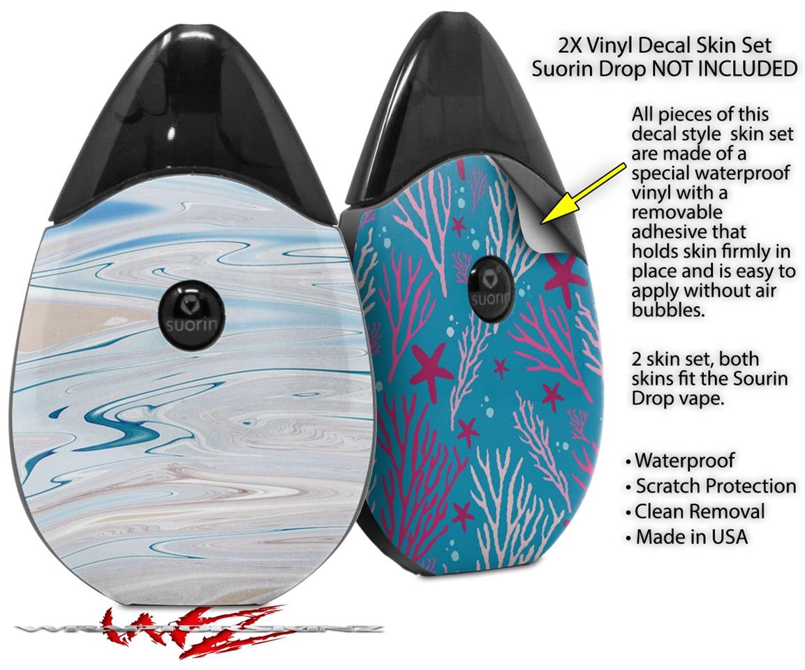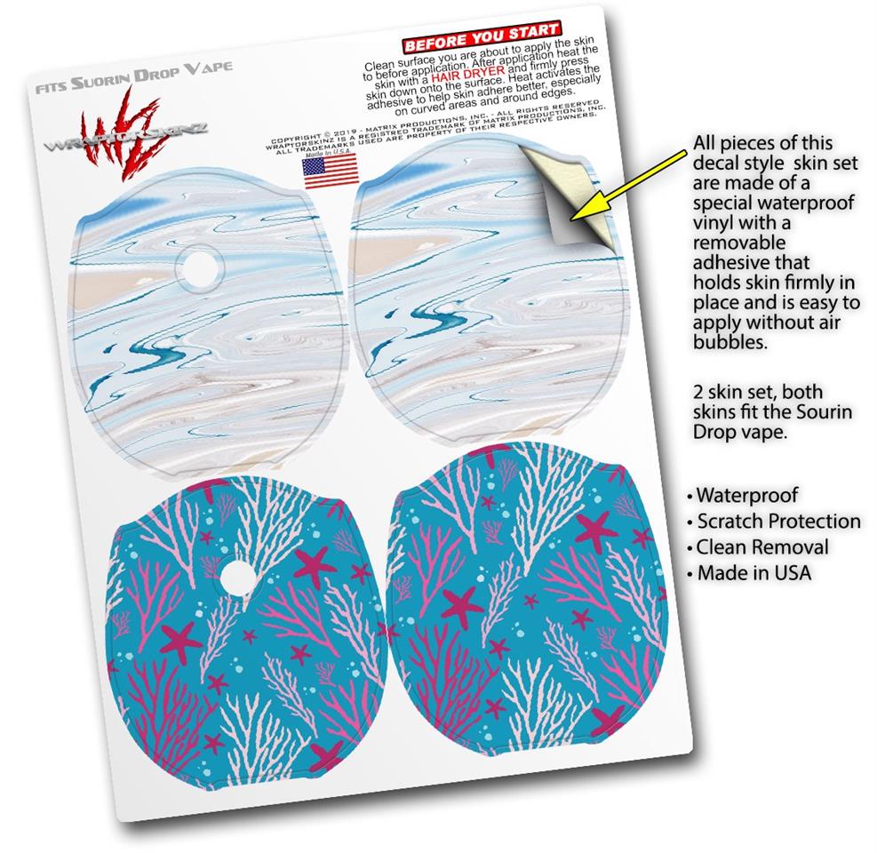 Skin Decal Wrap 2 Pack compatible with Suorin Drop Marble Beach VAPE NOT INCLUDED