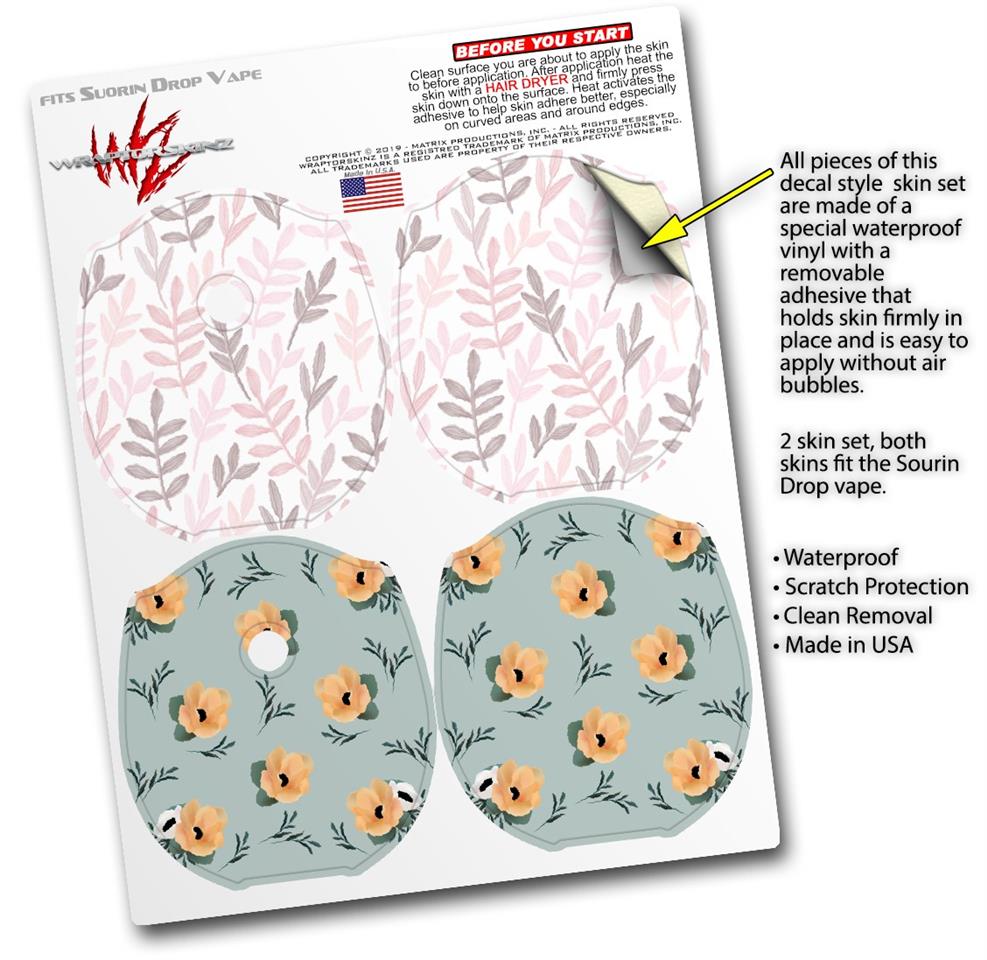 Skin Decal Wrap 2 Pack compatible with Suorin Drop Watercolor Leaves VAPE NOT INCLUDED