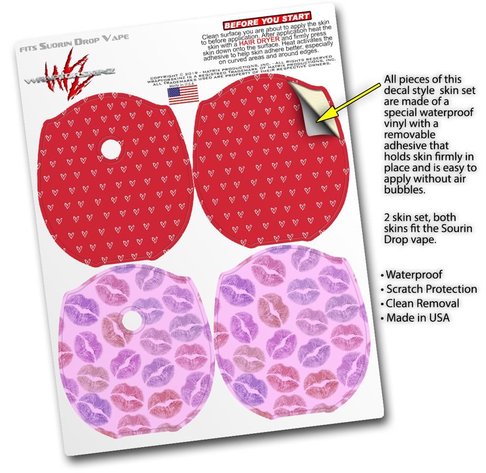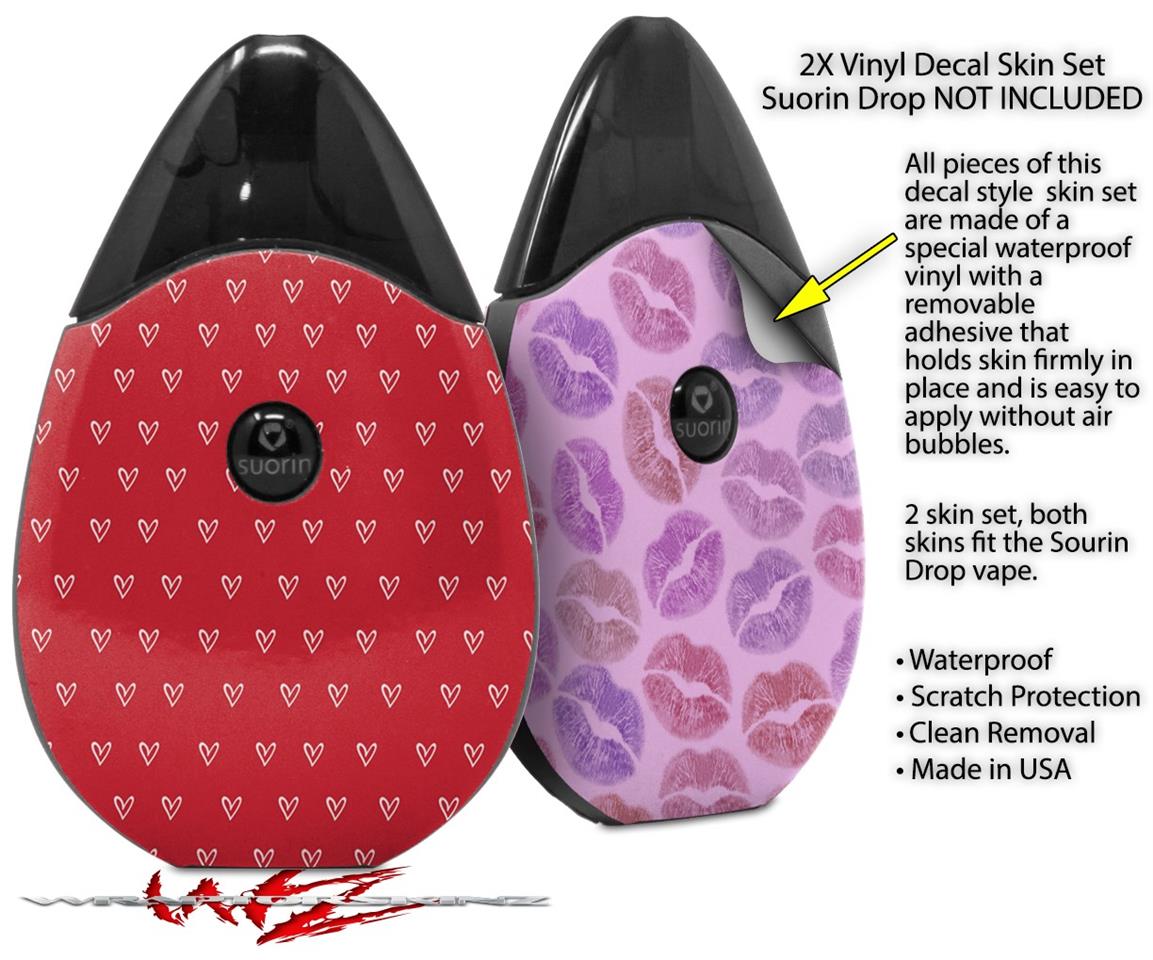 Skin Decal Wrap 2 Pack compatible with Suorin Drop Hearts Red On White VAPE NOT INCLUDED
